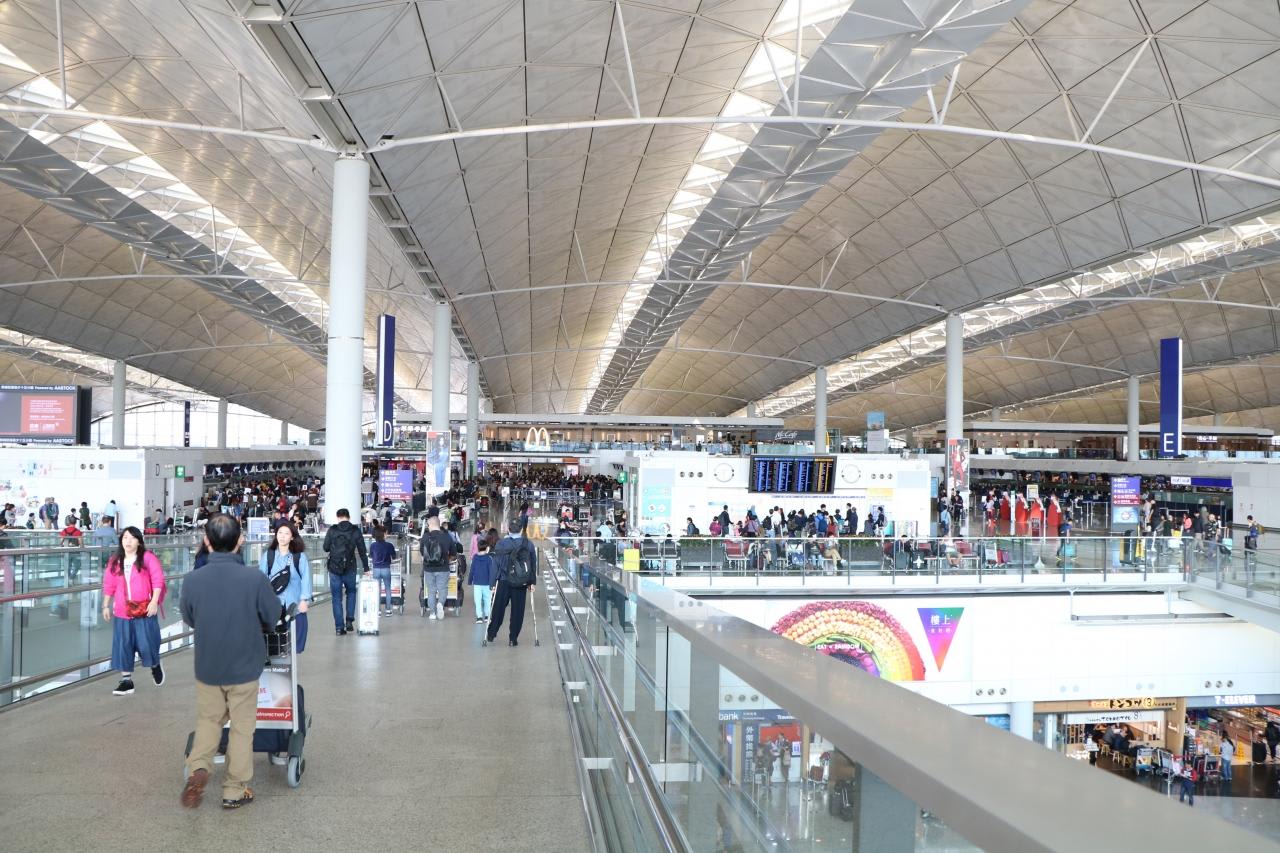 香港国際空港(チェクラップコク国際空港)の第1ターミナル。ターミナルに入った途端、広大なスケールと人の多さに驚きました。
