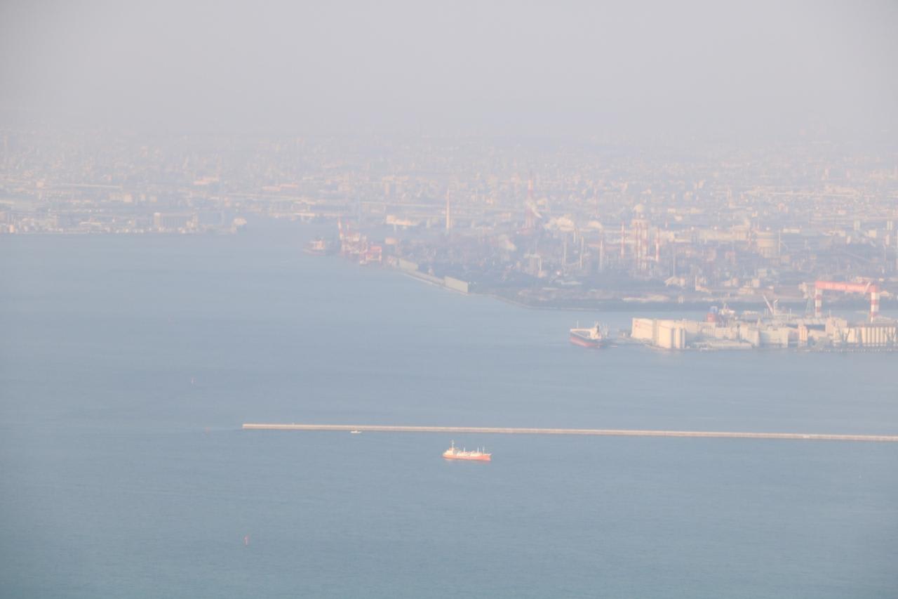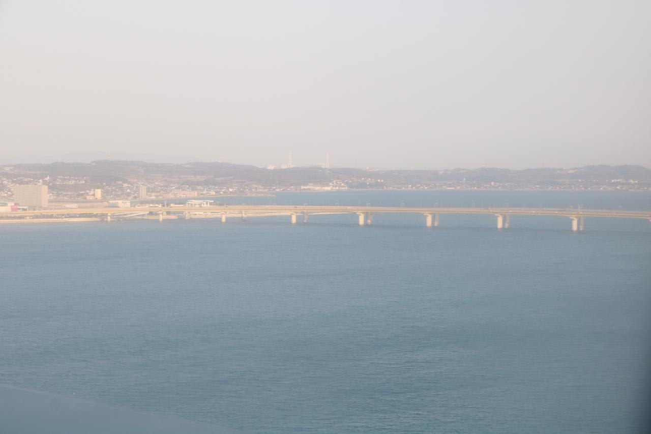 中部国際空港連絡道路の橋が見えてきて間もなく中部国際空港。風向きの関係で今日はいつもとは逆の方向から進入して着陸するようです。