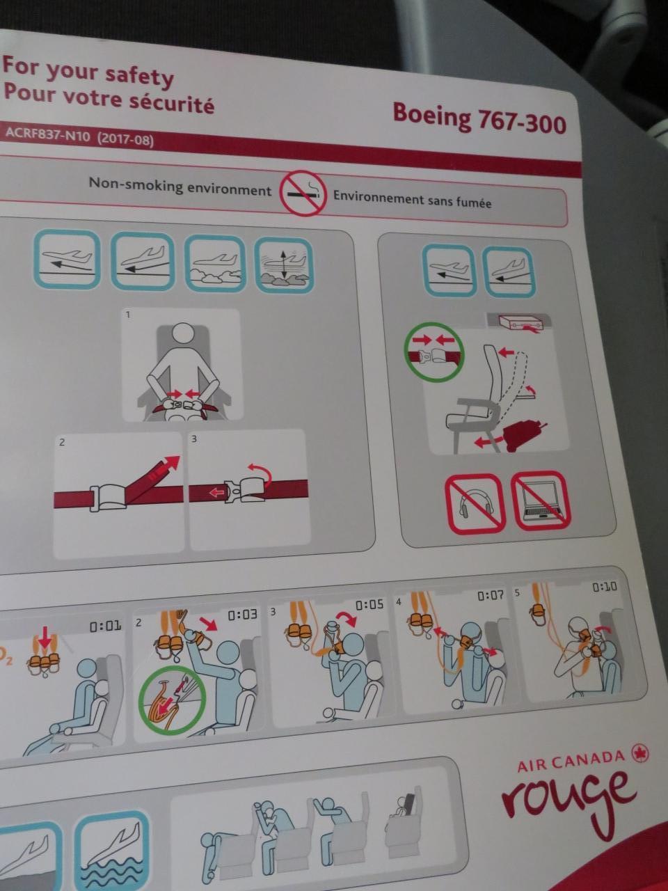 モニター画面もなく暇なので座席に配置の緊急時対応の安全ガイドをじっくりと見ました。
