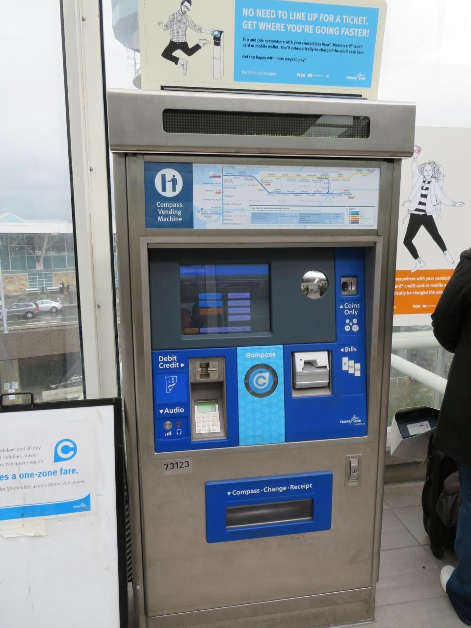 カナダの入国審査が無事に済み、チケットの自動販売機へ。クレジットカードの読み込みが上手くいかず、何度も試し、やっとデイパスが購入できました。