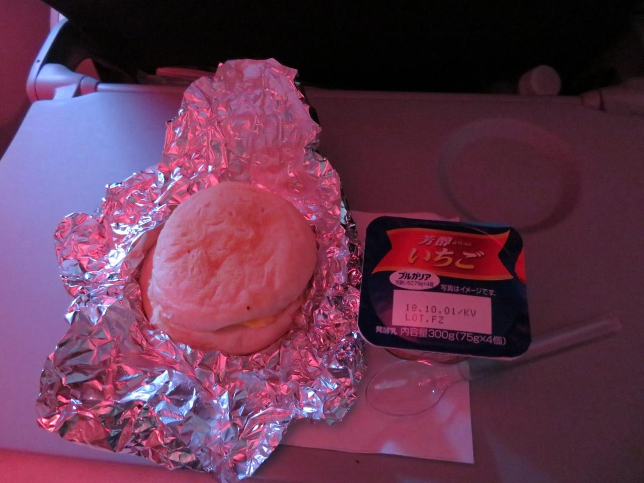 着陸1時間半前に配られた質素な朝食。もう少しでバンクーバーに到着だ。もう少しの我慢!座禅している時のような心境!?