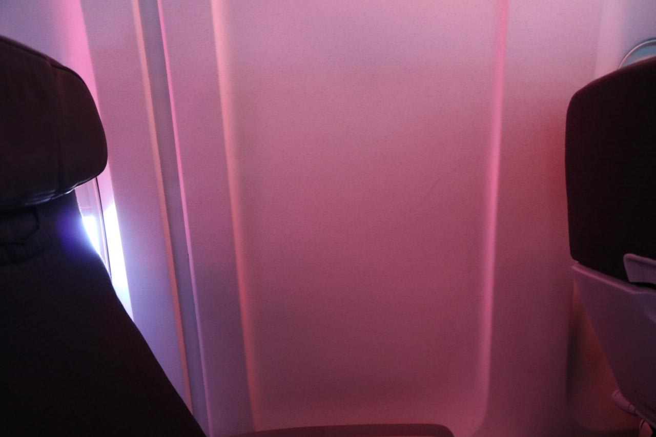 座席の窓ガラスがなく外が何も見えない。誕生日が「23」なので23Aを選びましたが、これが最悪の選択となりました。モニター画面もないし、窓ガラスがなく下界の風景が何も見えない。まるで荷物室に座っているみたい。これから9時間以上どうやって過ごしたらよいか苦痛!