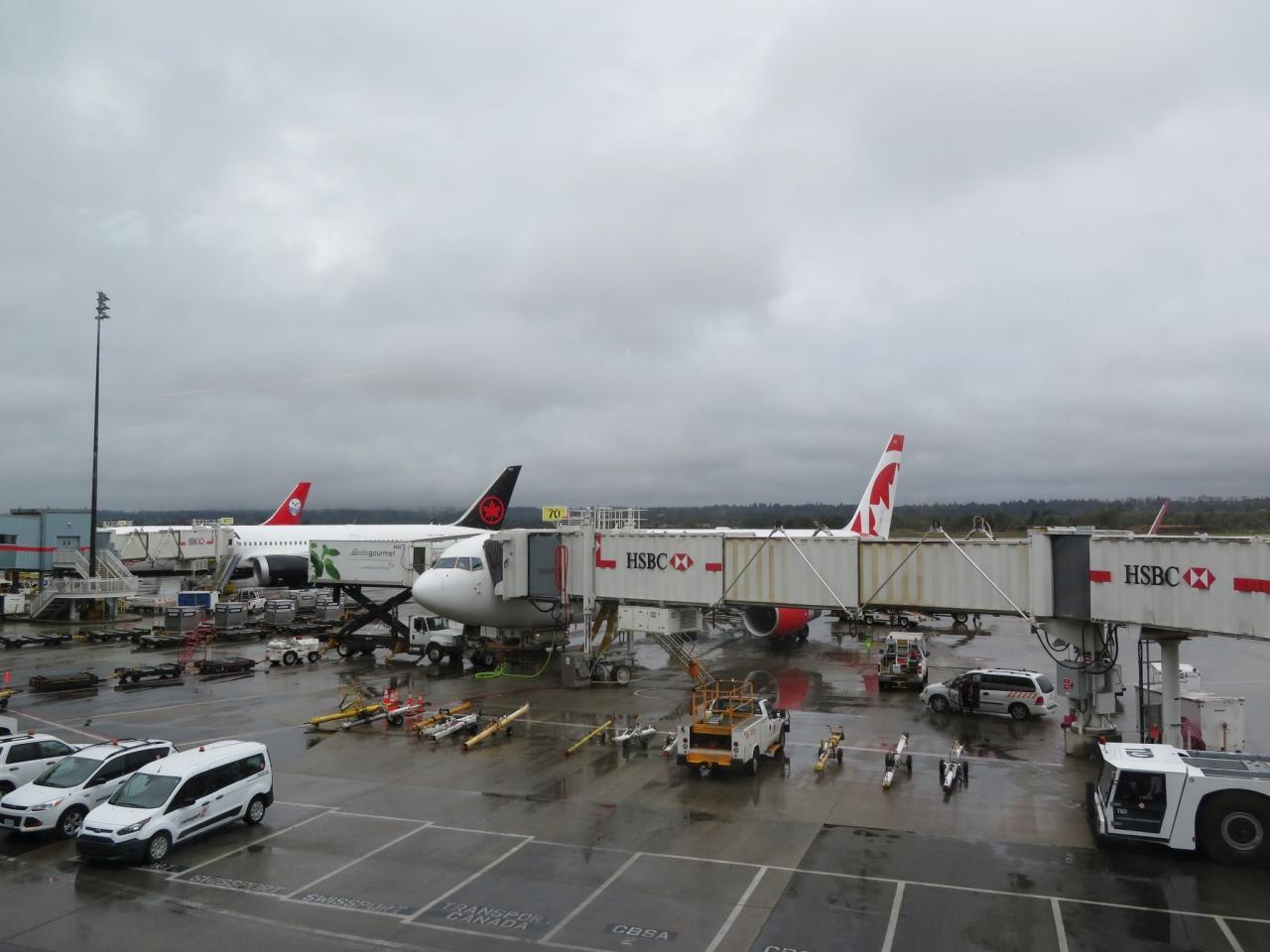 やっとバンクーバーに到着。乗って来たカナダルージュ機。この内容で航空運賃16万円は高い。今迄乗った国際線で最もつまらないフライトでした。