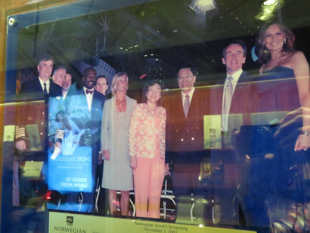 ノルウエイジャンジュエルのゴッドマザーはメラニア・トランプ(トランプ大統領夫人・当時は実業家トランプ氏の夫人)である事を示す銘盤を発見。これから11年後に大統領夫人になるとは・・・。
