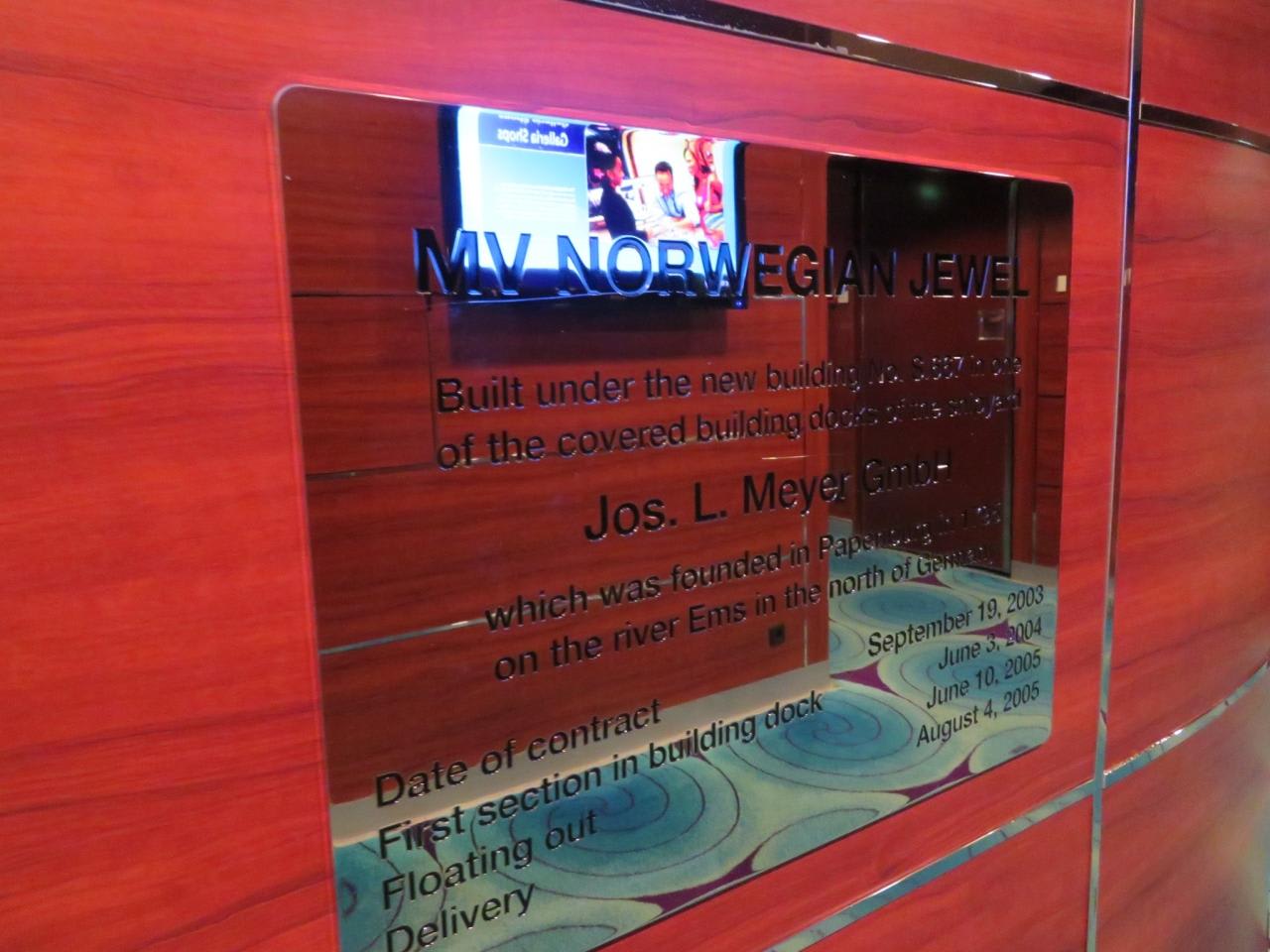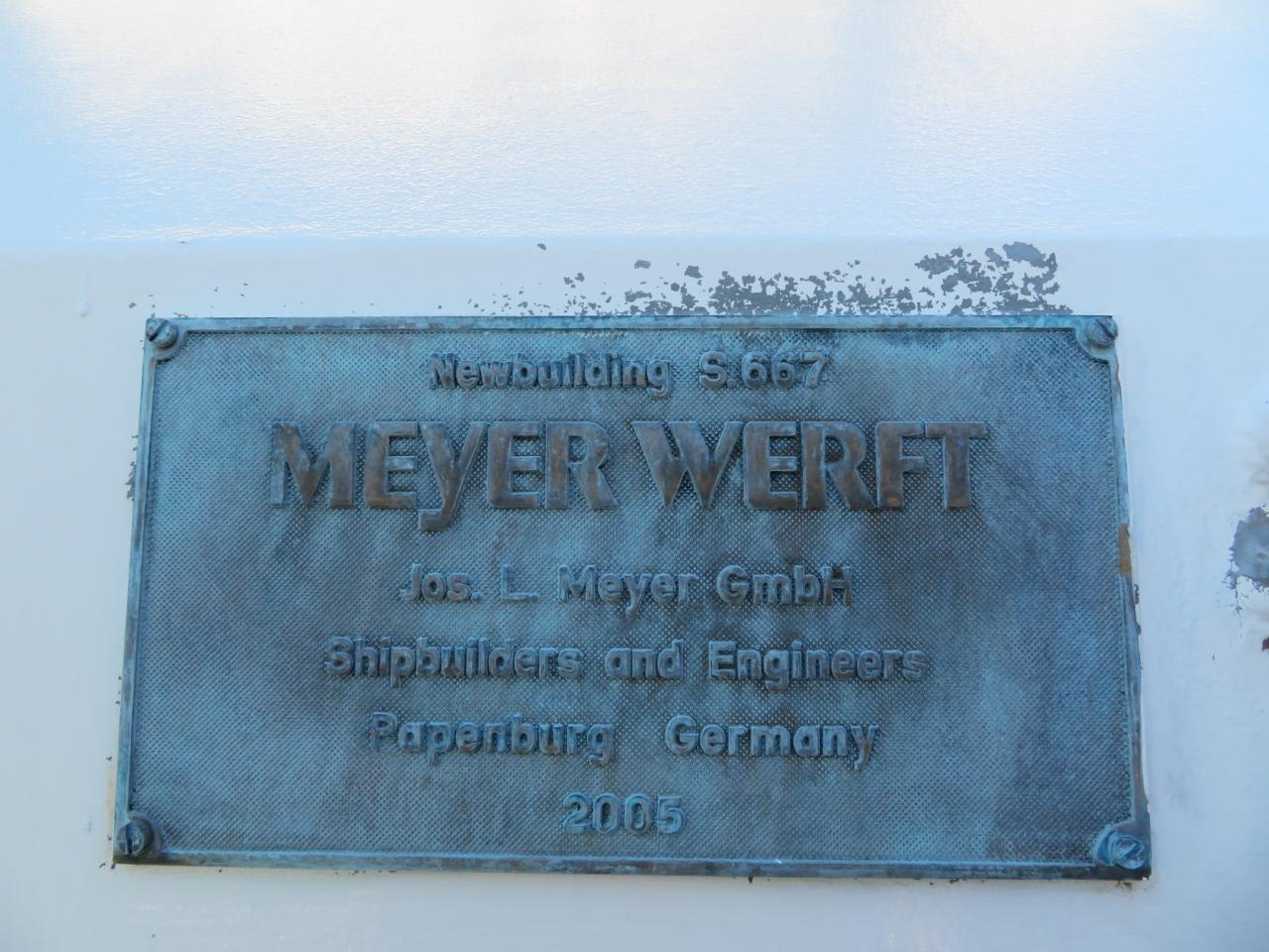ドイツのマイヤー造船所で建造された事を示す船内掲示の銘盤