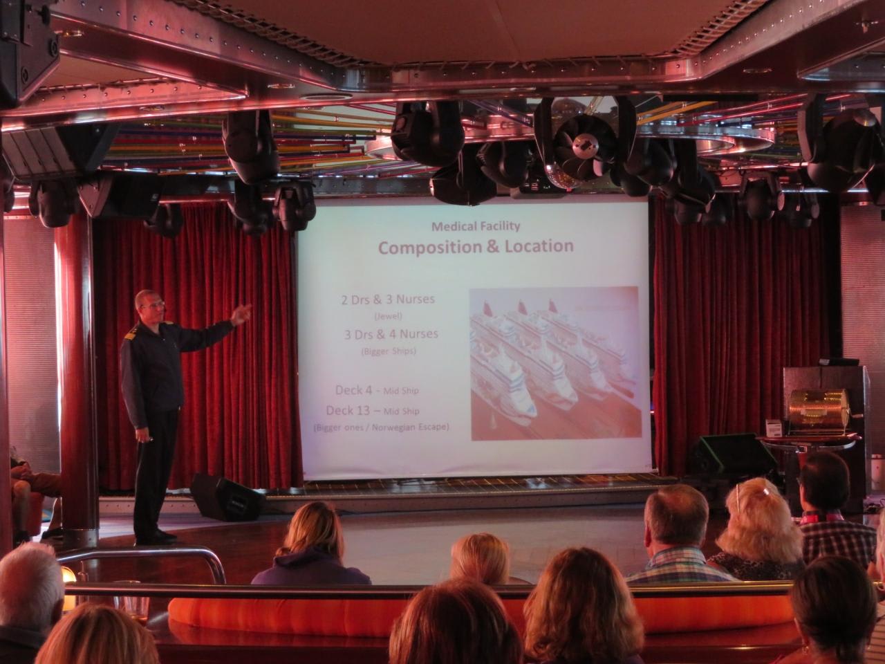 メディカルセンター勤務の医師による船の医療設備に関する説明MRIはないがICU(集中治療室)の設備もある事には驚き。