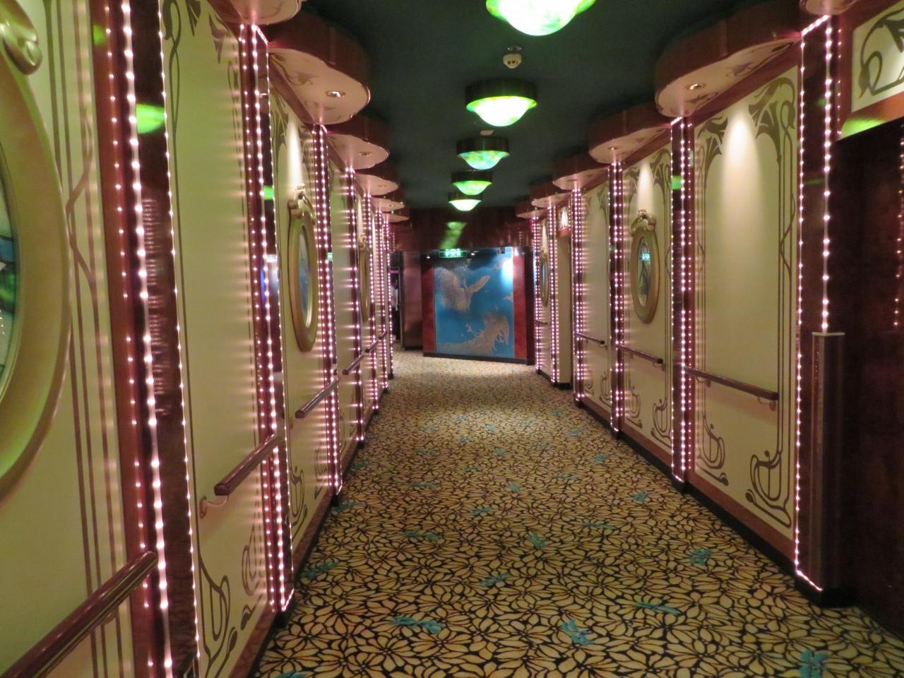 ノルウエイジャンジュエルのドアや廊下のジュータンの色はエメラルドグリーンが基調。何となくドイツを感じさせる。