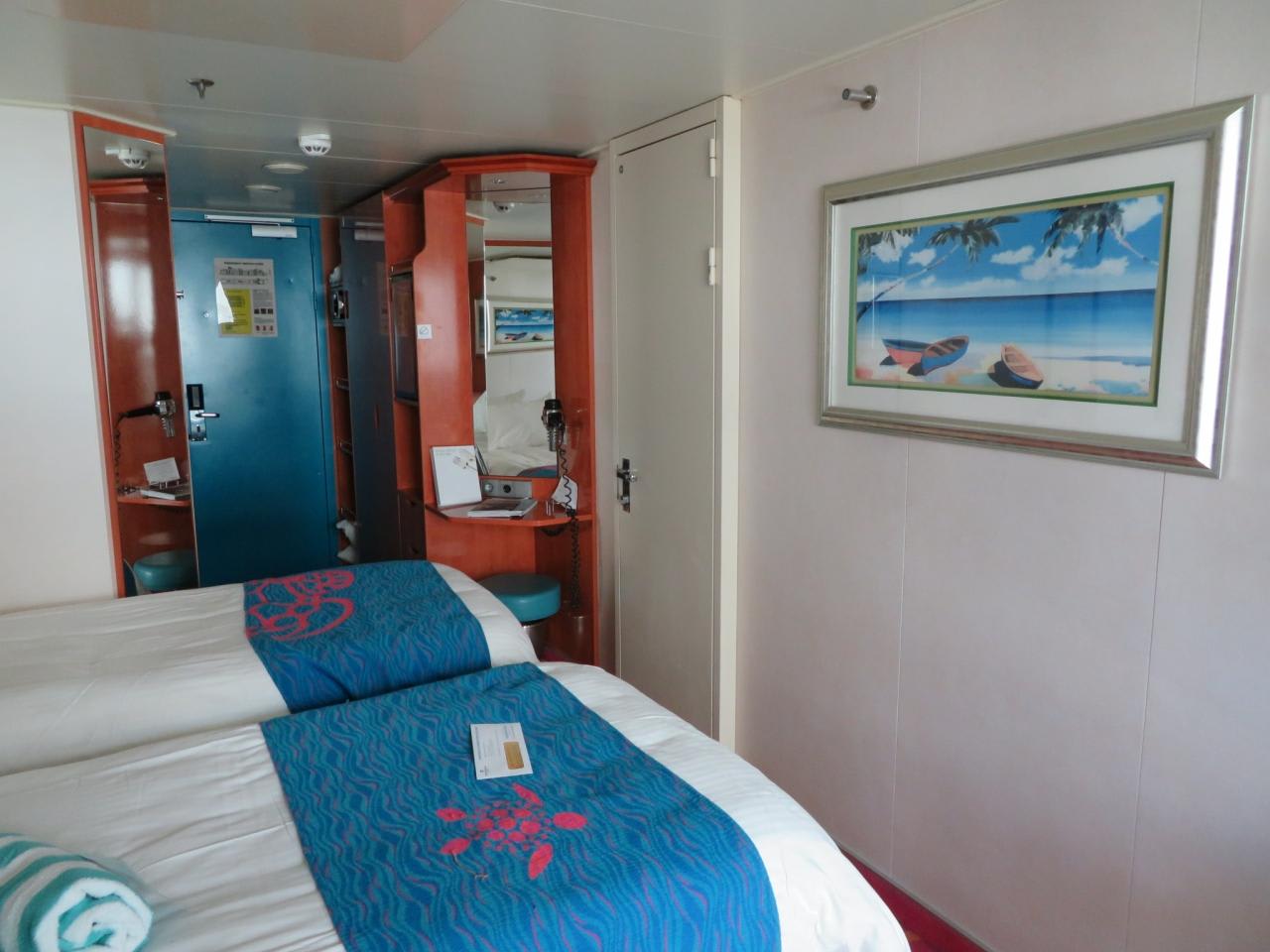 廊下側から見たキャビンキャビンは9階にあり、夜寝ている時はエアコンの送風音が聞こえるだけでとても静か。船上にいる事を忘れてしまう。