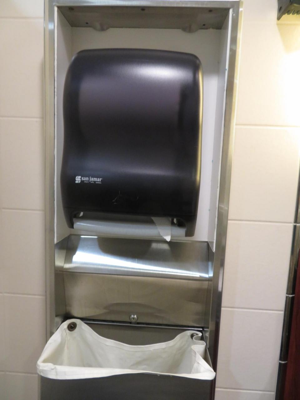 洗面所に設置されているパーパータオルの器械船内にいる時はエアコンが良く効いており汗もかかないので、この器械のお蔭でハンカチも必要なし。