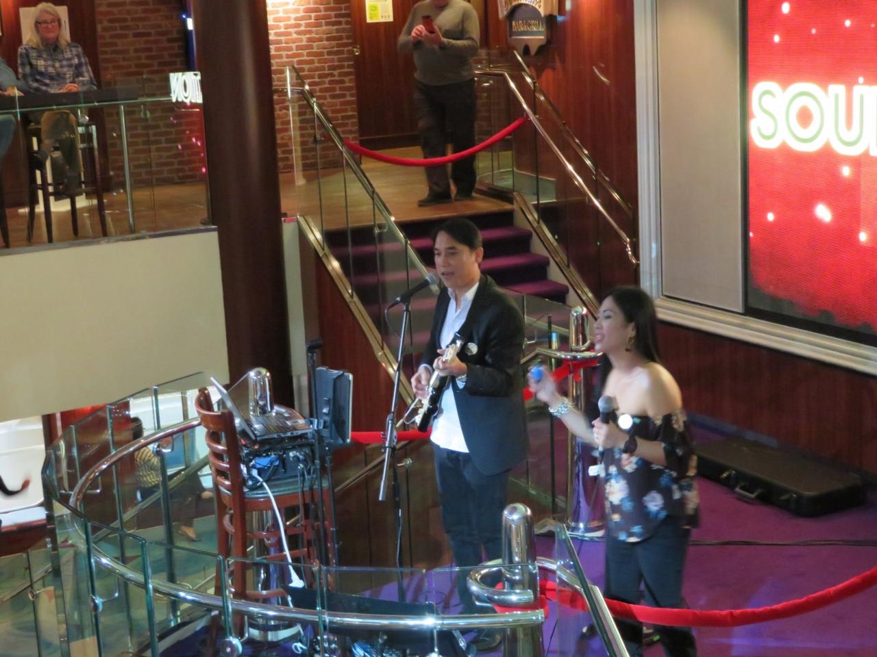 7階ラウンジのMagnum'sでは毎晩ボーカルとピアノの演奏。1970年代の歌を中心に歌い乗船客の年齢層に合わせている。みな知っている曲ばかり。音楽に国境はない!