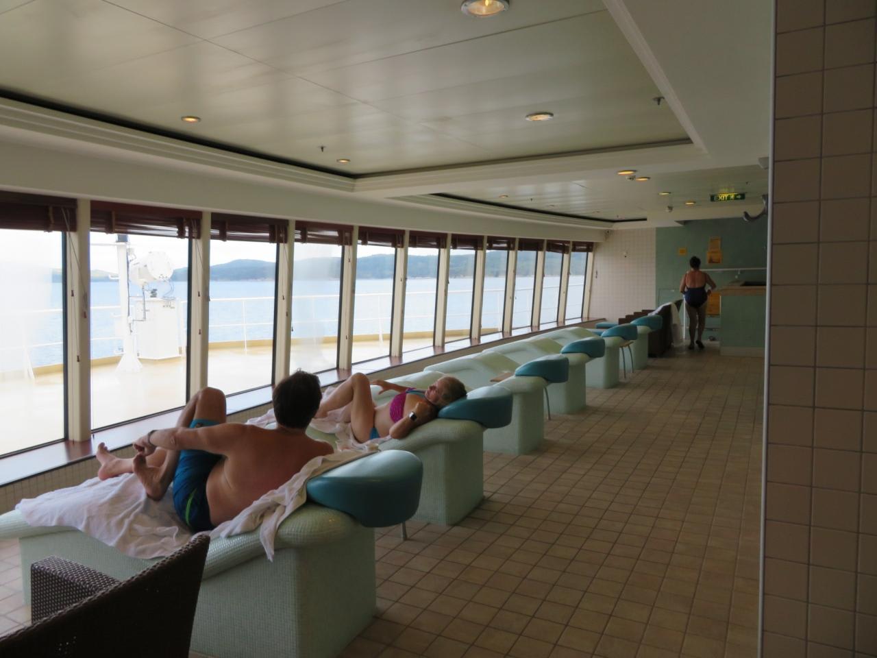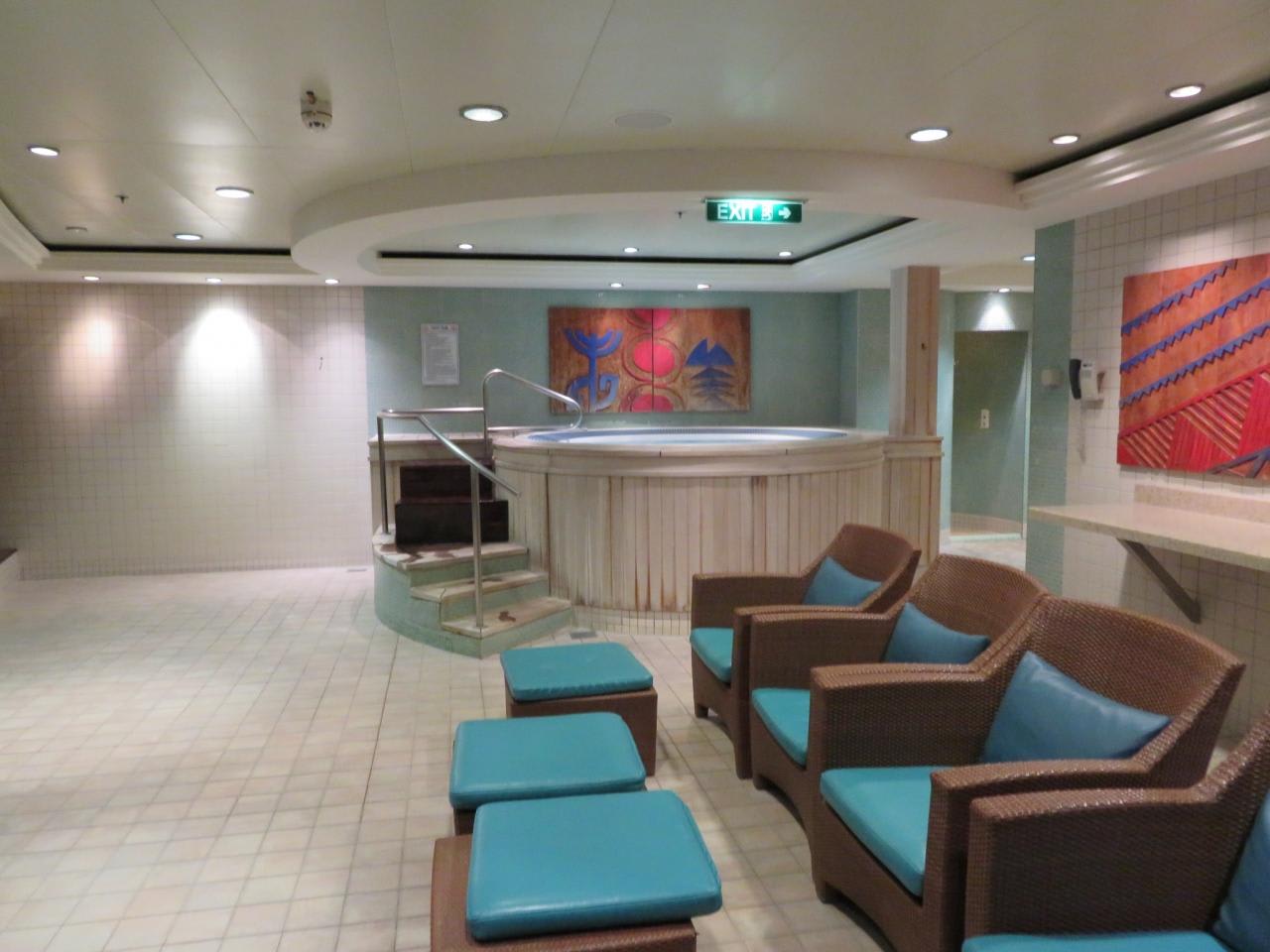 男性用のジャグジーと休憩室夕方にリラクゼーションルームに行きミストサウナに入ったり、ジャグジーに入る癒しのひと時はいつの間にか日課に。まさに洋上の隠れ家。