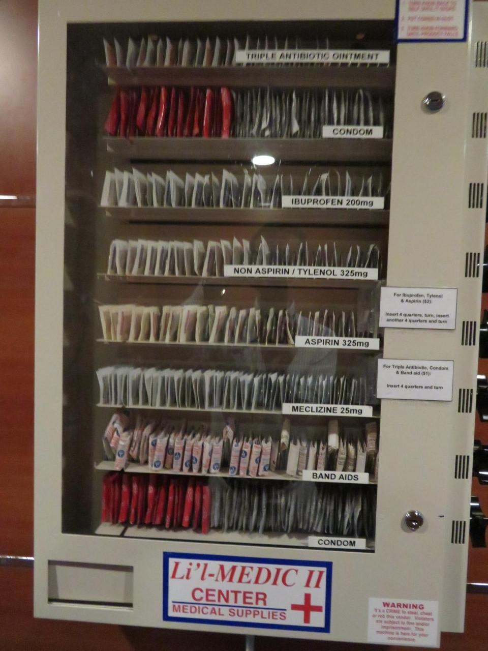 劇場に通じる6階のトイレ入口には何とコンドームや酔い止め薬、アスピリン、バンドエイドなどの自動販売機が設置されている。