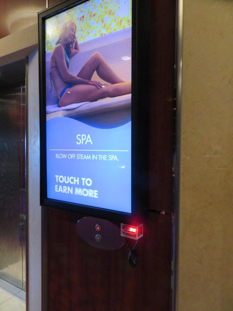14階へは最上級スイートルームのザ・ヘブン利用の乗船客しか昇れないようになっている。ザ・ヘブンの乗船客はエレベーターの上下ボタン右の赤いランプがついたカード挿入口にカードを入れて昇降する。