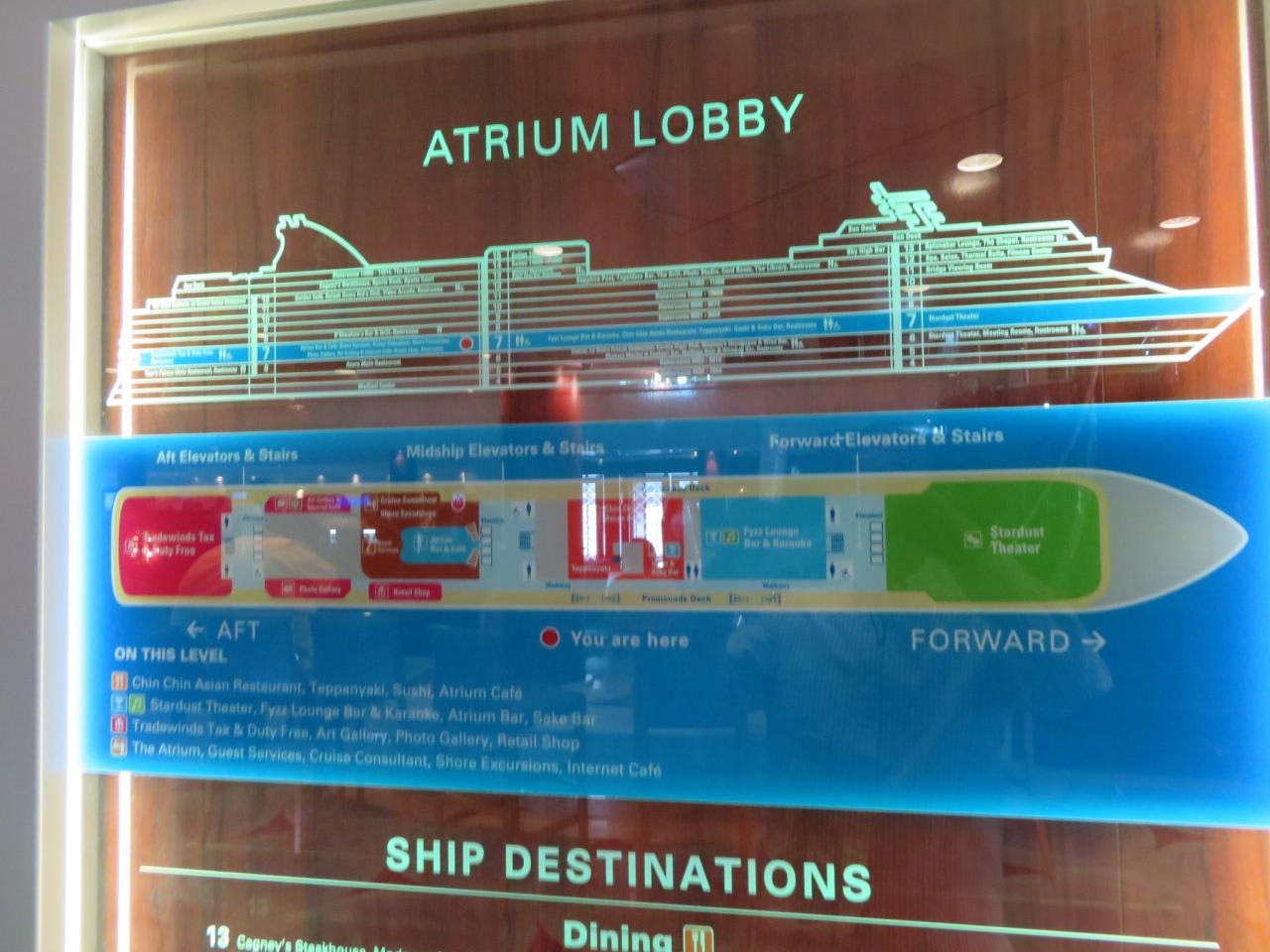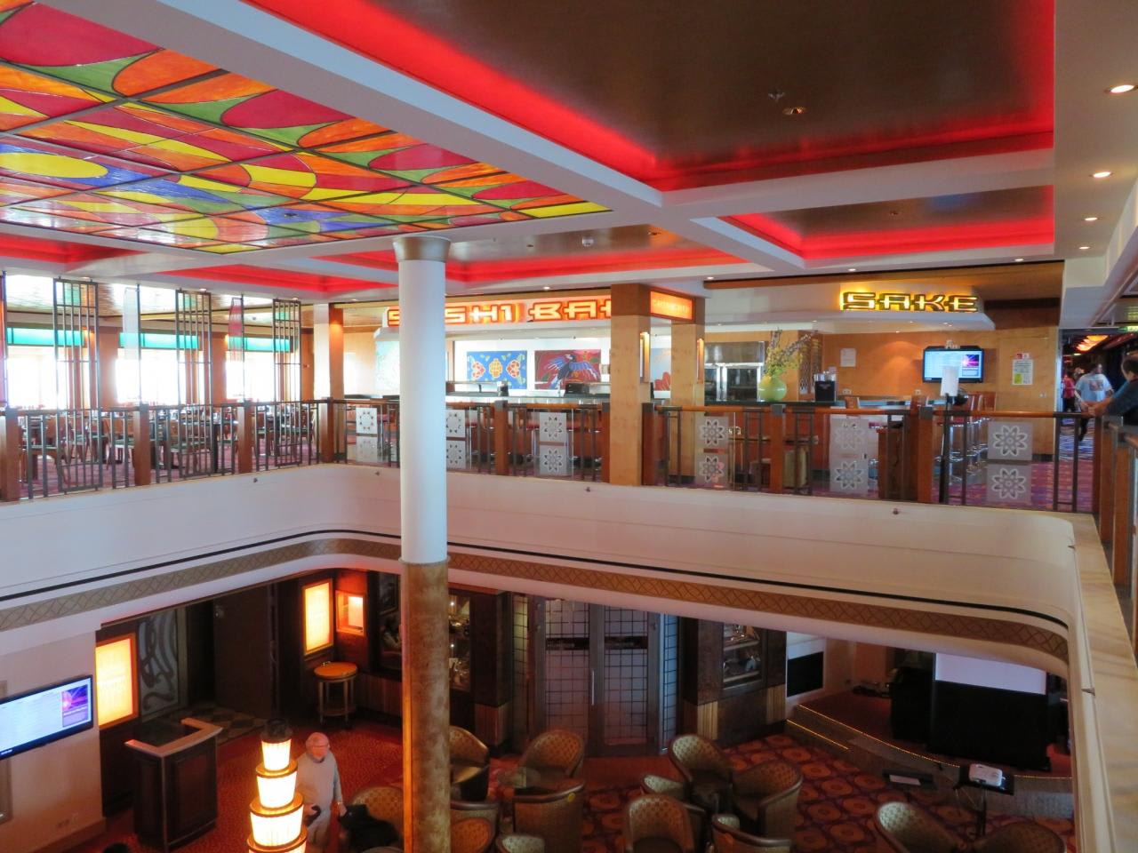 今回の太平洋横断クルーズは配置転換のクルーズなので、人気もなくきっと空いていると思いきや2,400名の定員に対し2,215名が乗船しており、船内のビュッフェやパブリックスペースは人でいっぱい。まるでアメリカのファミリーレストランにいるようです。