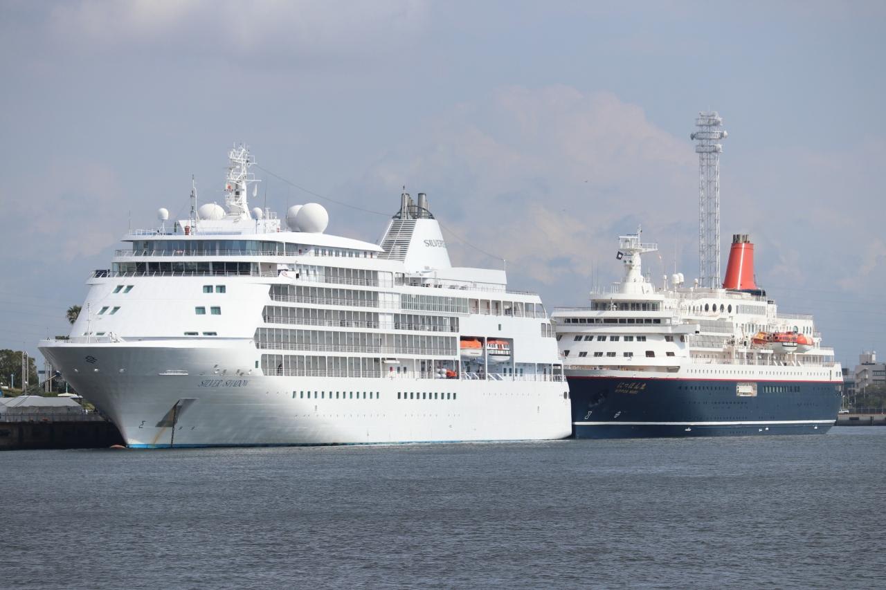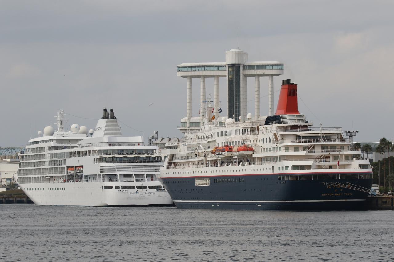 続いて後ろ側からシルバーシャドー&にっぽん丸のランデブー写真あとから来たにっぽん丸は午後1時に出港し、午前9時から午後1時までのランデブー。