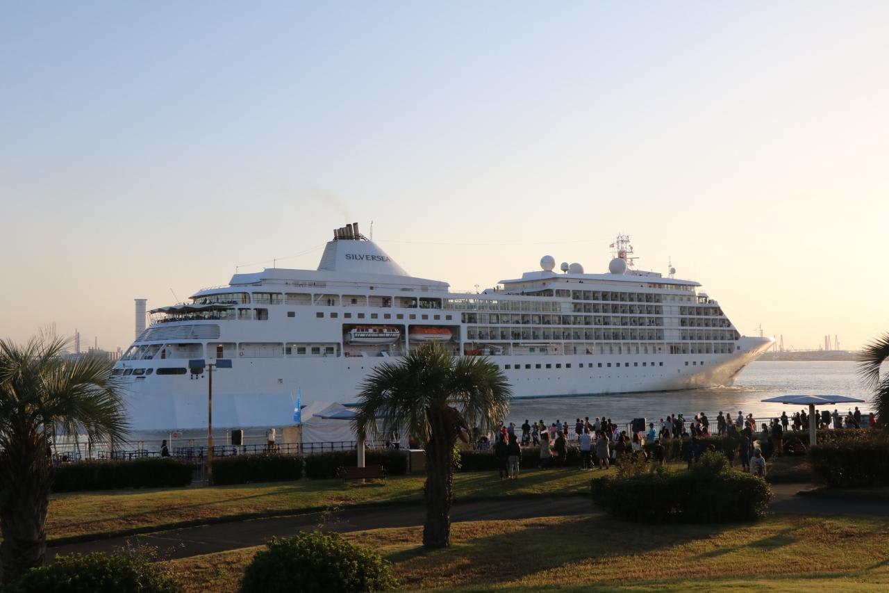 夕陽を浴びるシルバー・シャドーガーデンふ頭は客船が入港すると訪れる人も増え活気づいてGOOD!