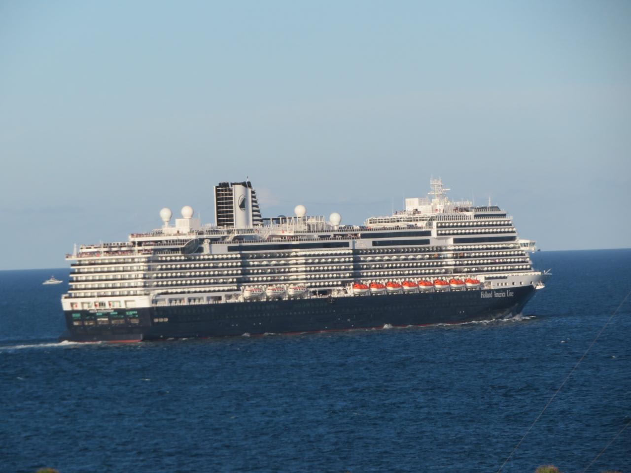 続いてホーランドアメリカラインの新造船ニュースタテンダムが出港して行きました。