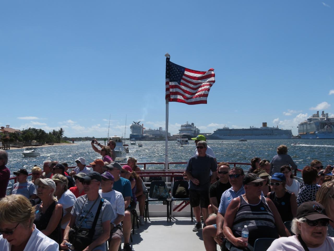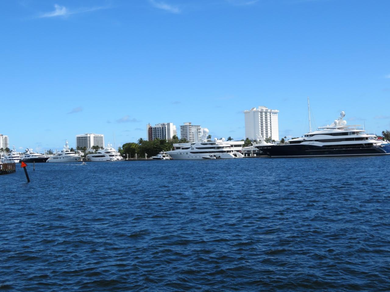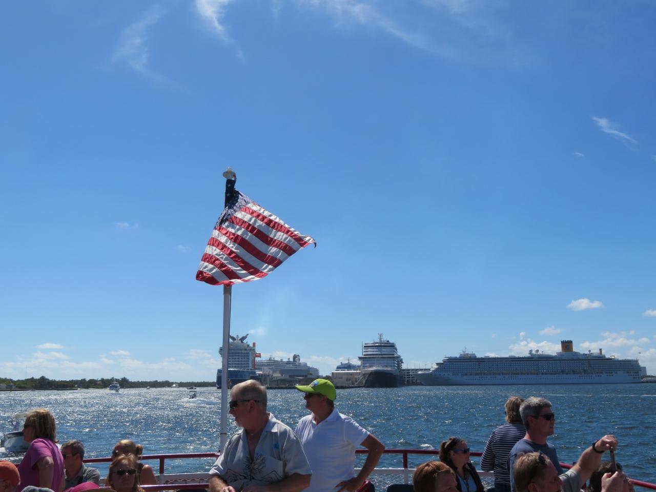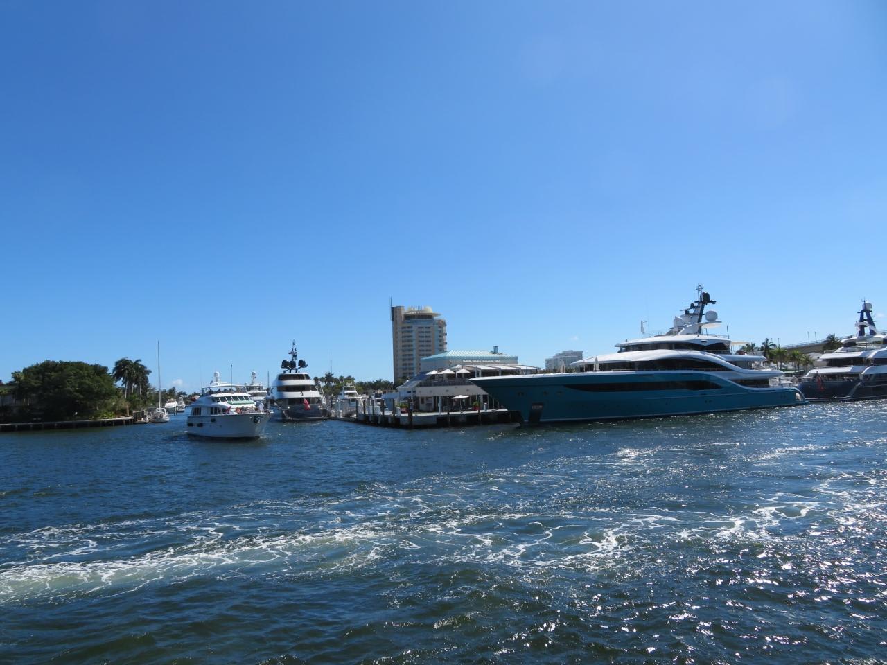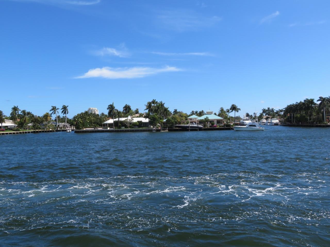 フォートローダーデールは「アメリカのベニス」とも呼ばれているので、先ずは運河を通って港を巡る遊覧船に乗りに行きました。運河沿いにはセレブの別荘が建ち並び、クルーザーが運河を行き交っています。
