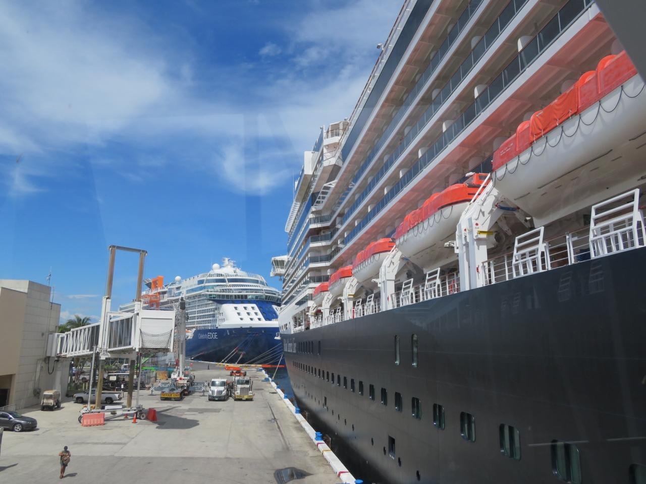 ニューアムステルダムの後ろにはセレブリティシルエットが停泊