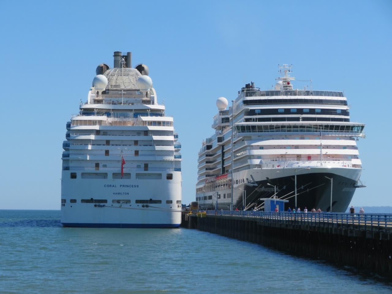 ショアエクスカーションから戻るとニューアムステルダムの隣にコーラルプリンセスが停泊していました。ニューアムステルダムとコーラルプリンセスをバックに地元の人が海水浴を楽しむ光景は素晴らしい!!!
