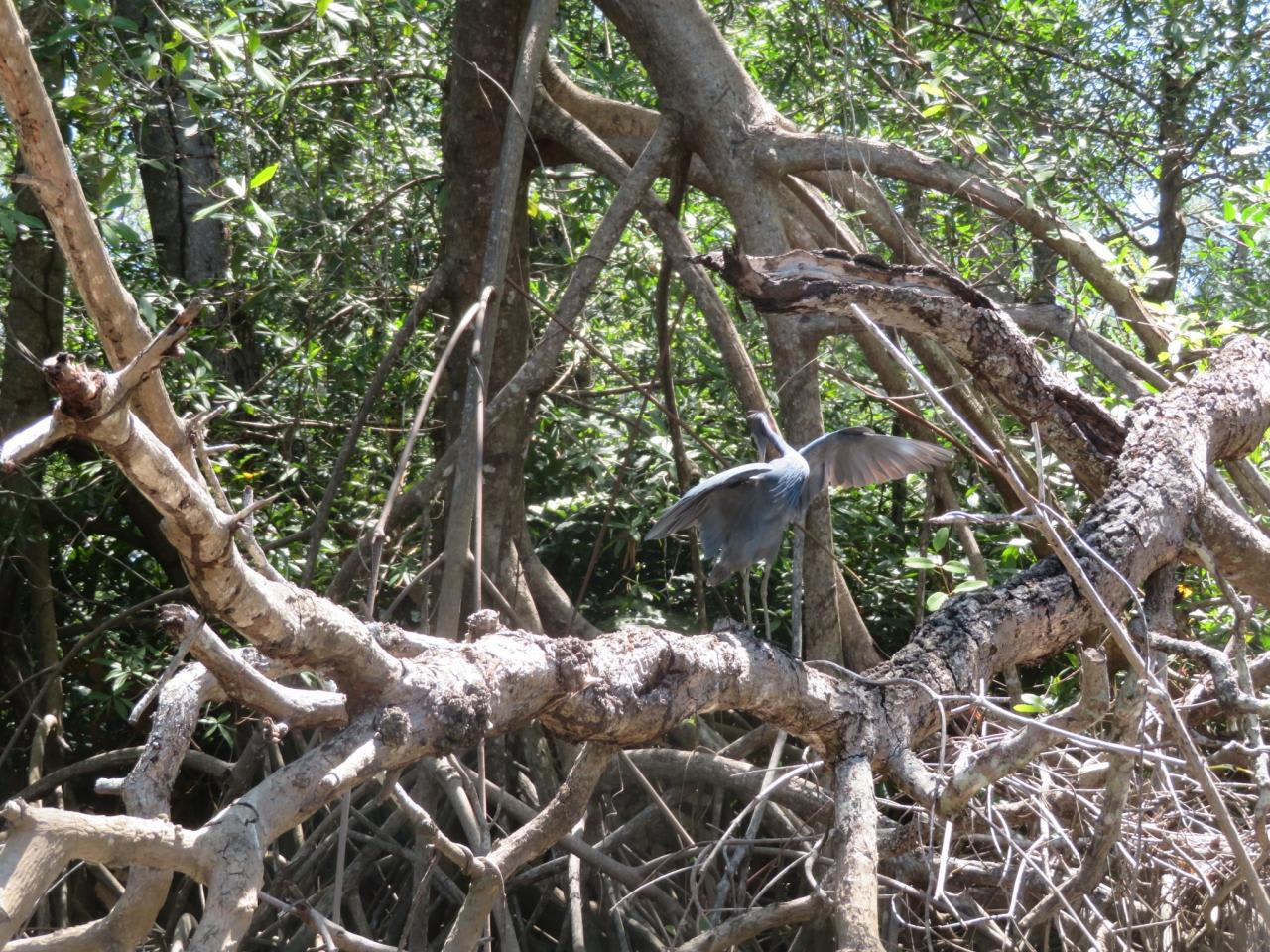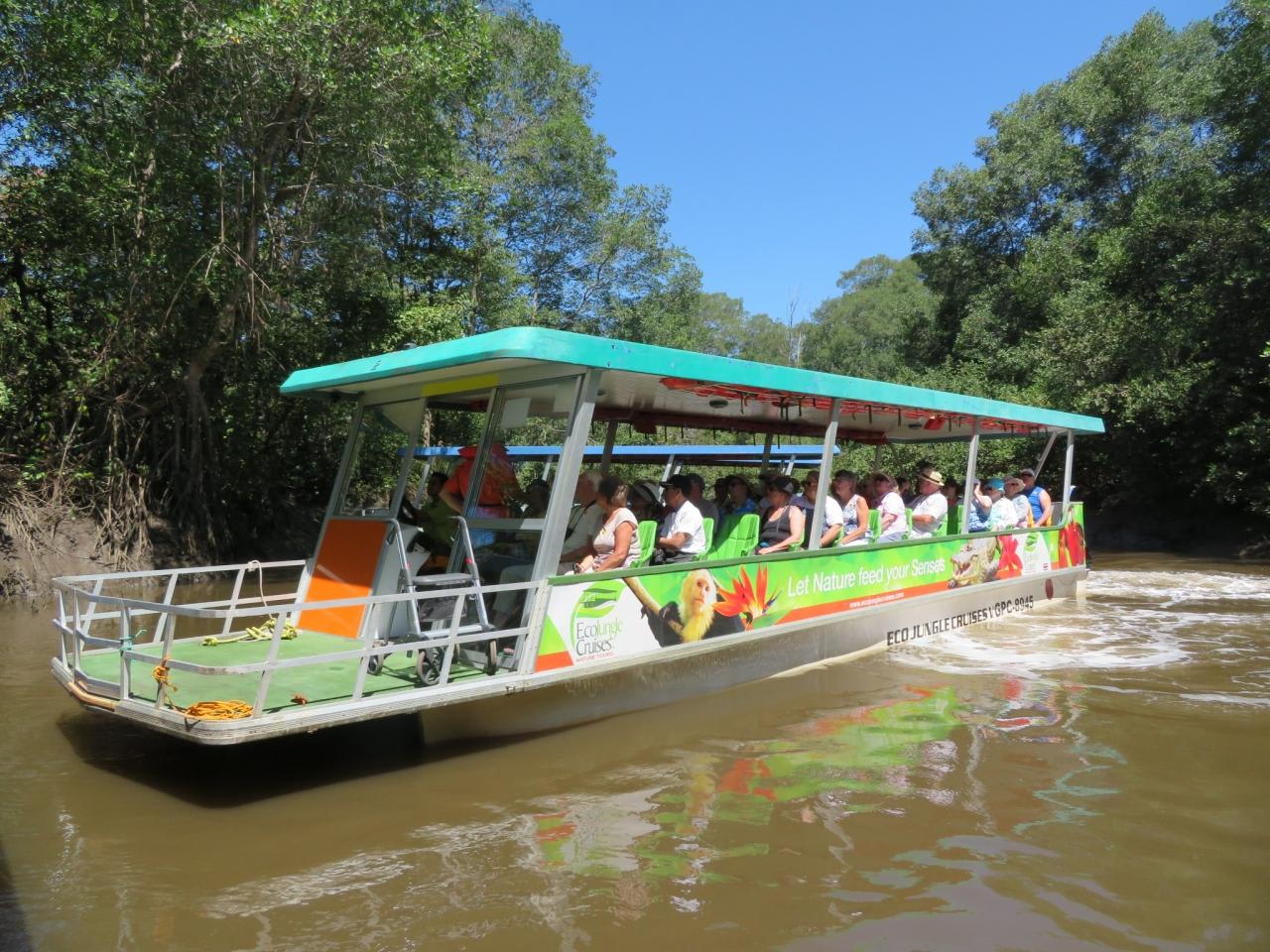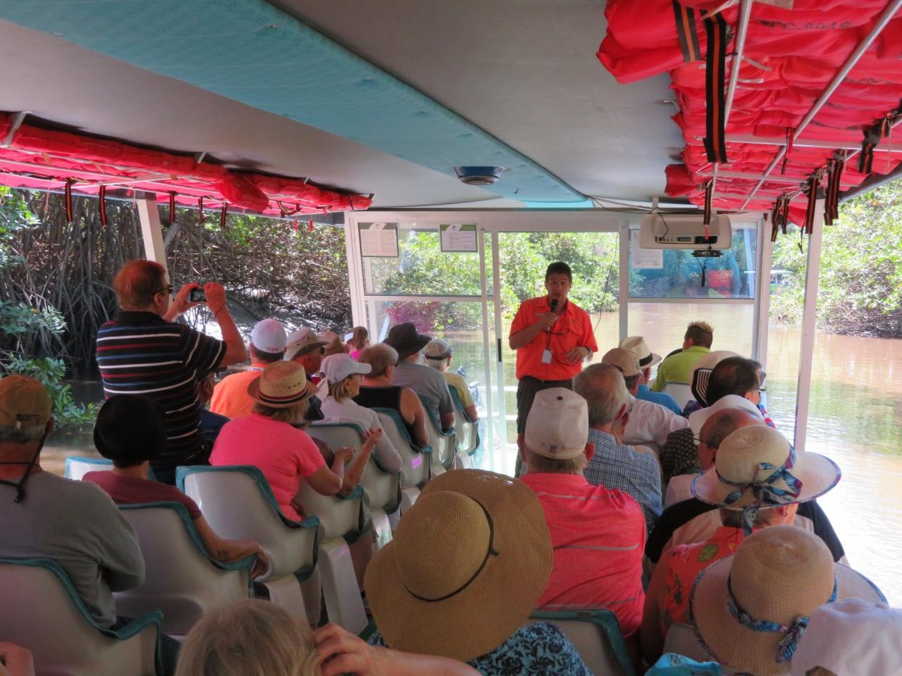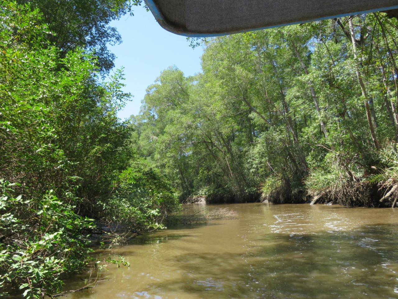 マンゴローブが生い茂るジャングルの中を進むリバーボートに乗船。