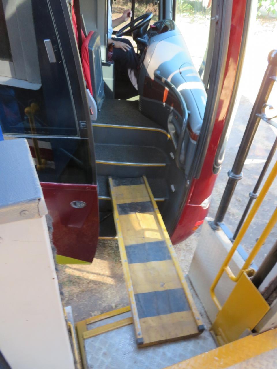 観光列車の終点では列車から橋板を利用して待機していた観光バスに乗り移り