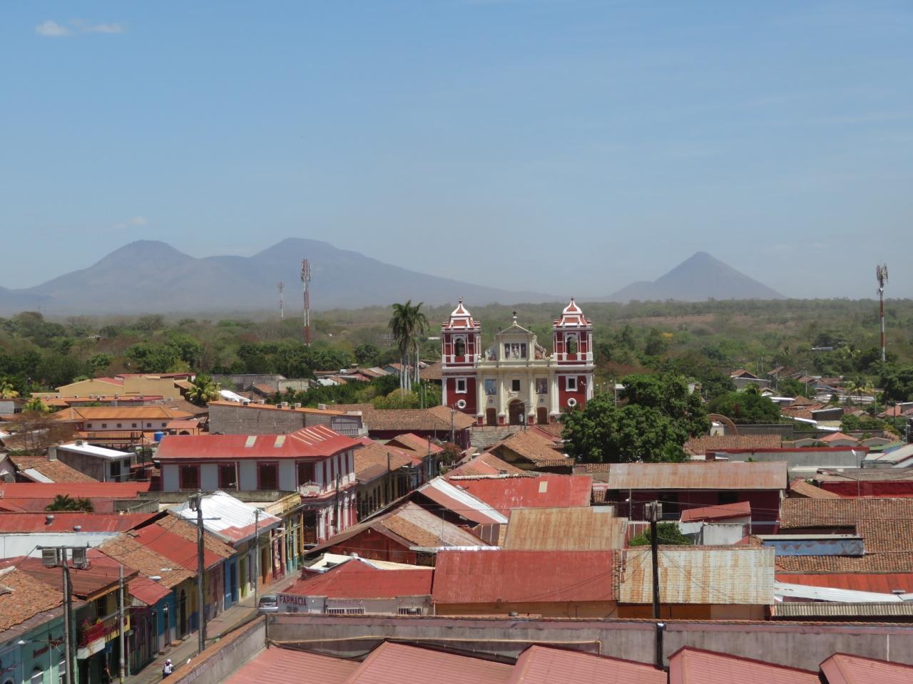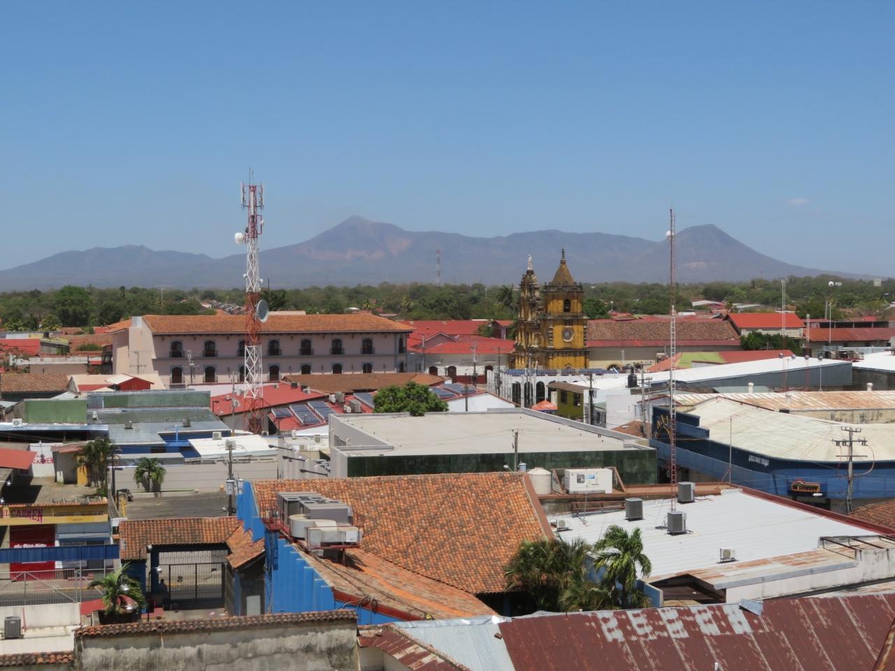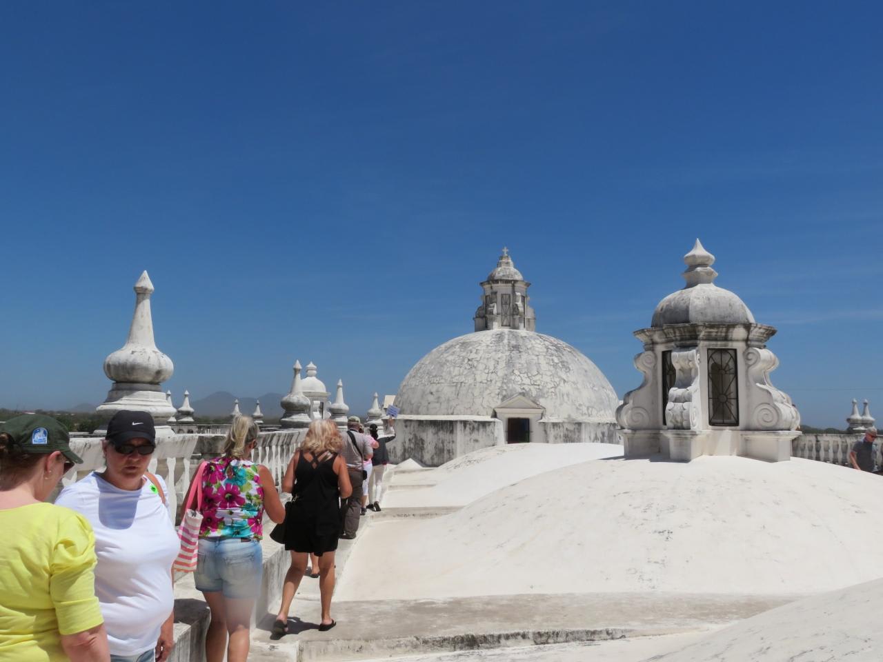 埠頭から片道80分位観光バスに乗り、レオンの町を訪れました。中米最大というアスンシオン大聖堂を訪れ、植民地時代に完成するまで100年かかったというバロック様式の大聖堂は壮麗で屋上に階段で登り、モモトンボ山などの火山を背景にしたレオンの世界遺産の街並みと火山のパノラマビューを満喫しました。