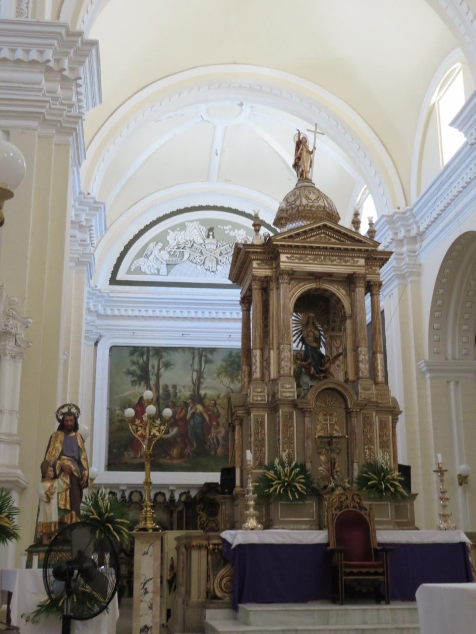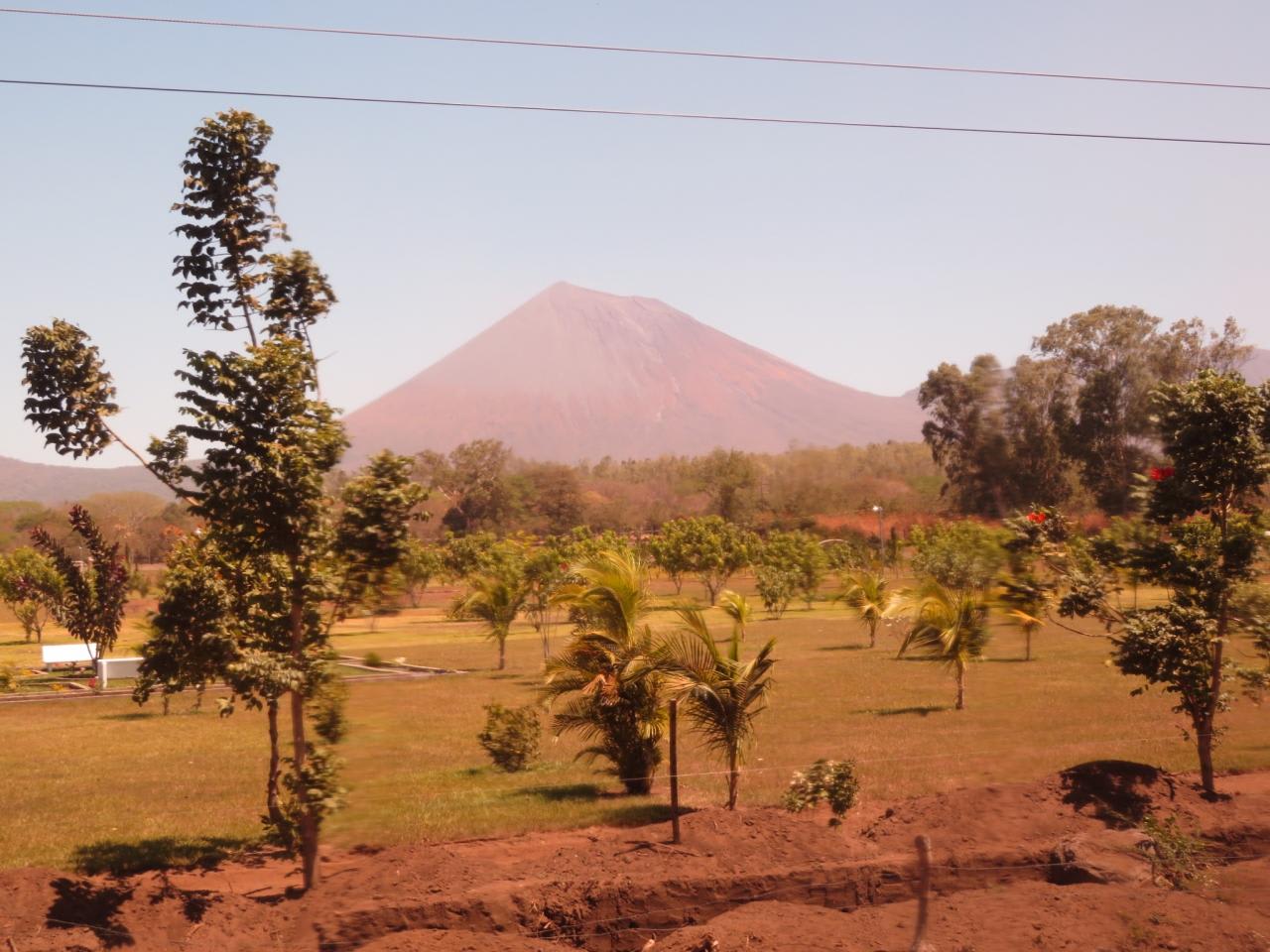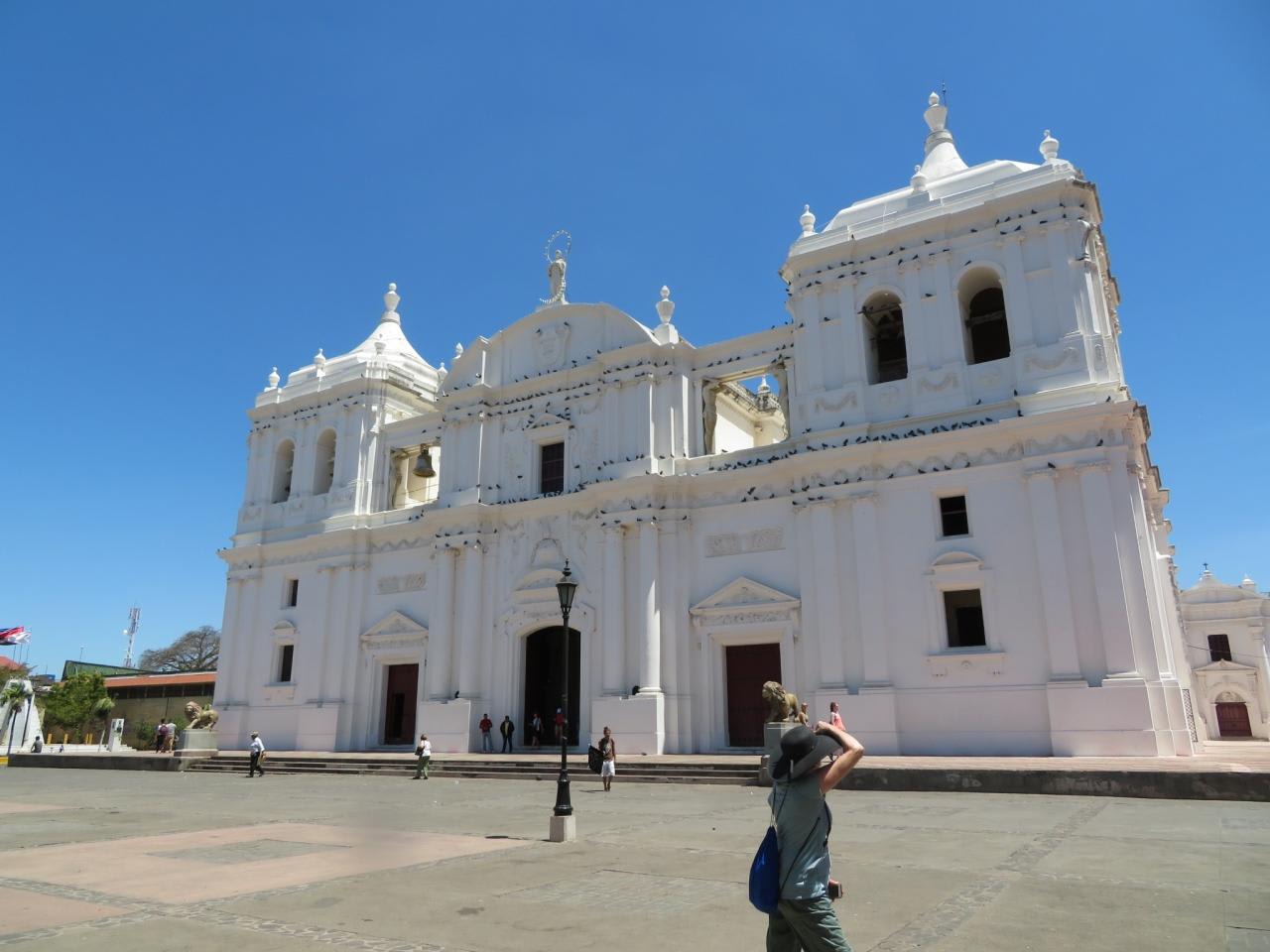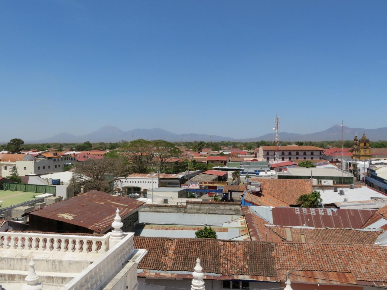 埠頭から片道80分位観光バスに乗り、レオンの町を訪れました。中米最大というアスンシオン大聖堂を訪れ、植民地時代に完成するまで100年かかったというバロック様式の大聖堂は壮麗で屋上に階段で登り、モモトンボ山などの火山を背景にしたレオンの世界遺産の街並みと火山のパノラマビューを満喫しました。