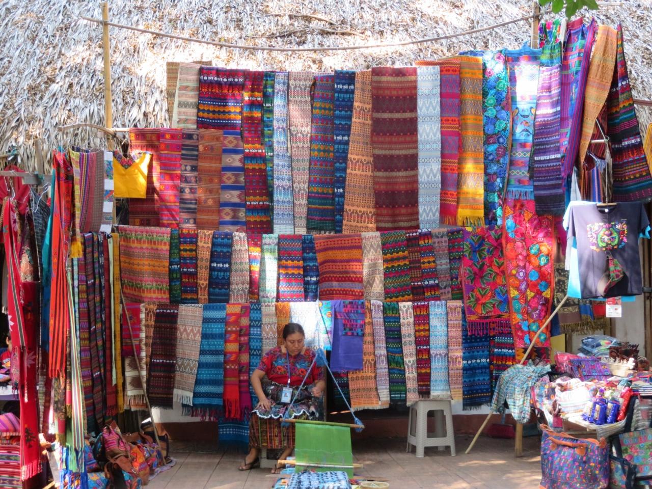 マヤの歴史と文化の素性を反映した色彩豊かな刺繍の織物