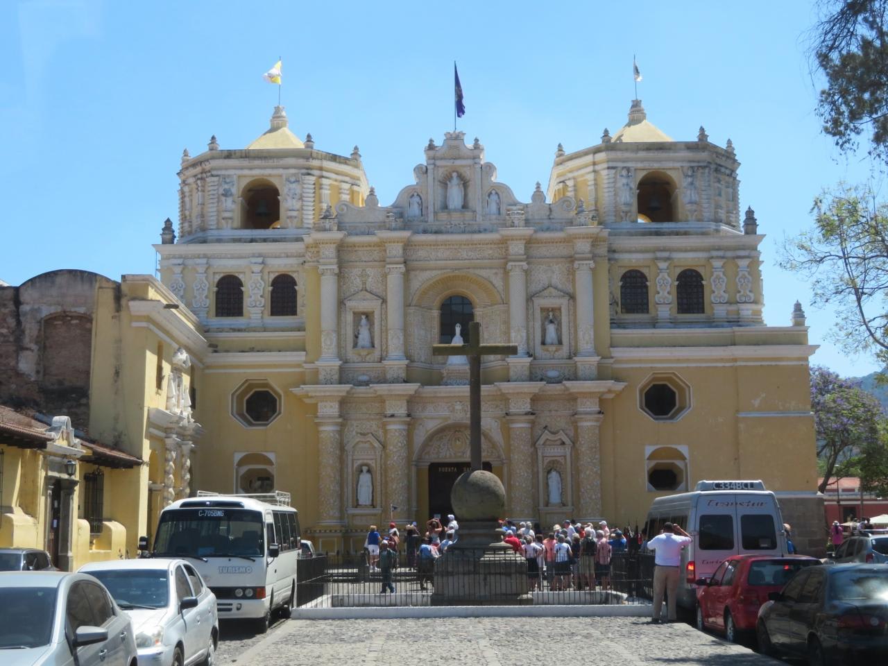 アンティグアの標高は1,520mなので熱帯地方なのに涼しい。アンティグアの道路は狭いので大型バスから小型のコーチに乗り換えて市内を遊覧