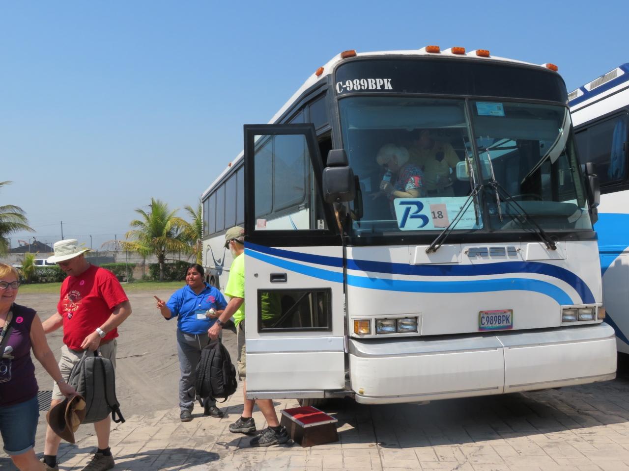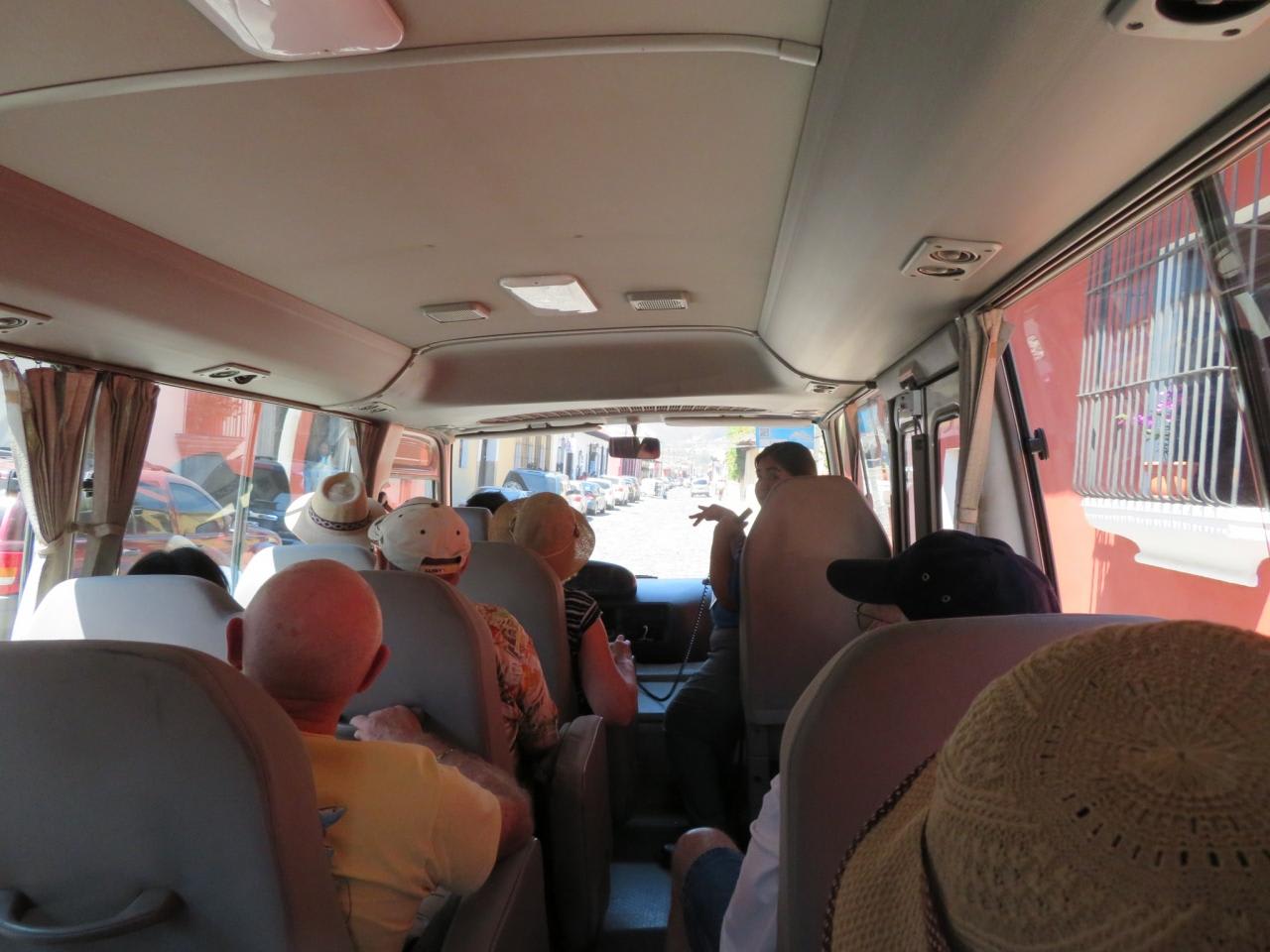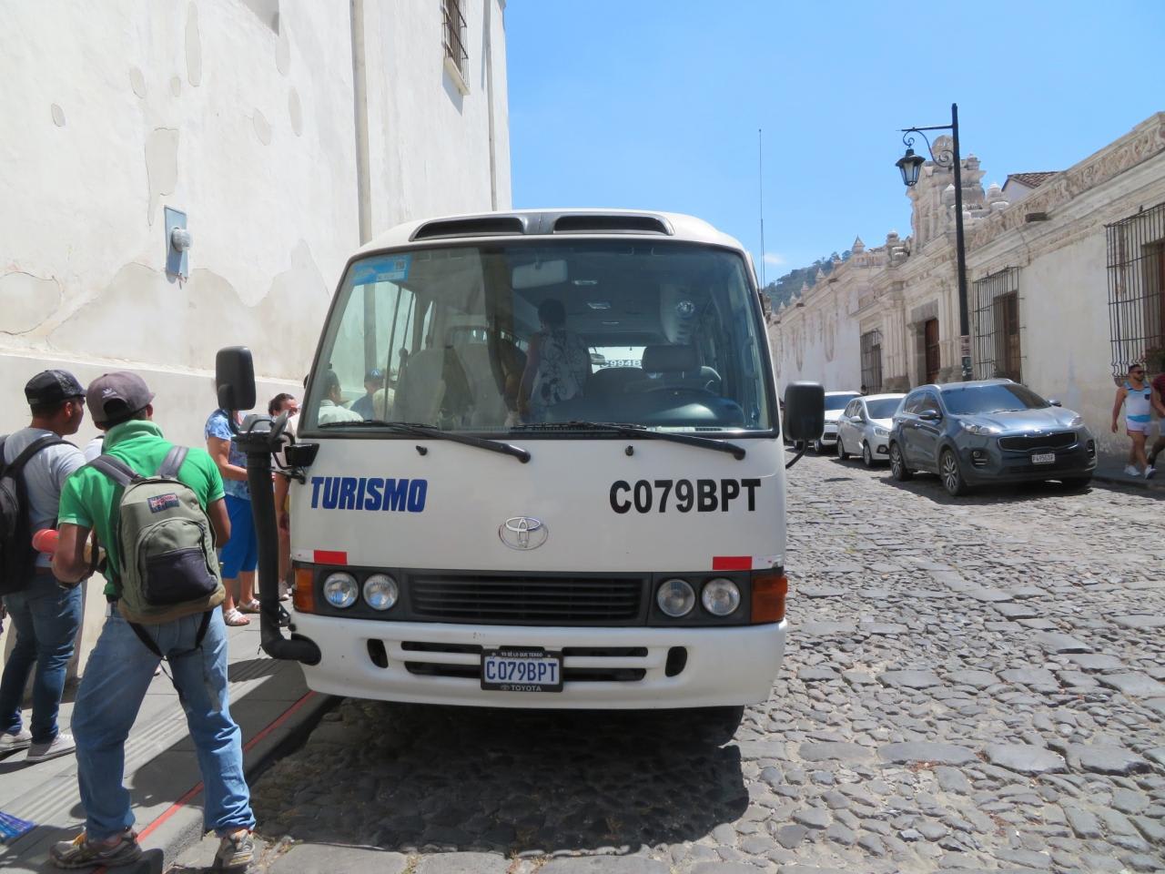 この観光バスでアンティグアの町へ向かいます。(片道90分)