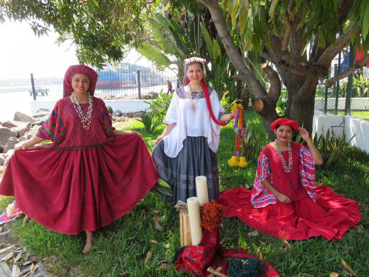 綺麗な民族衣装を着たグアテマラの美女がお出迎え