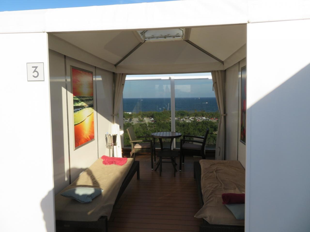 直射日光が当たるデッキでも屋根がついた個室形式になっており快適なスペース