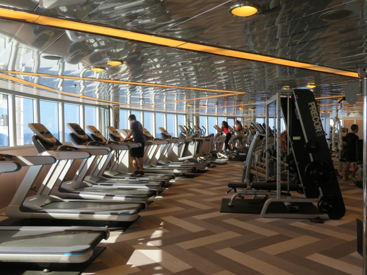 進行方向の海に向かってランニングでき心地良い。9階リドデッキ前方にあるフィットネスセンター