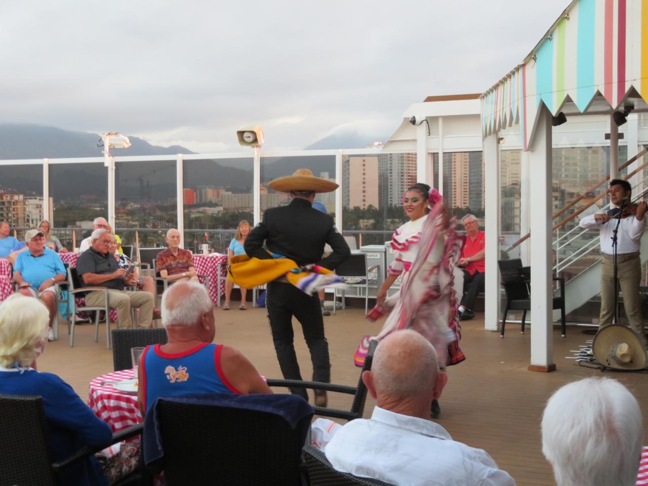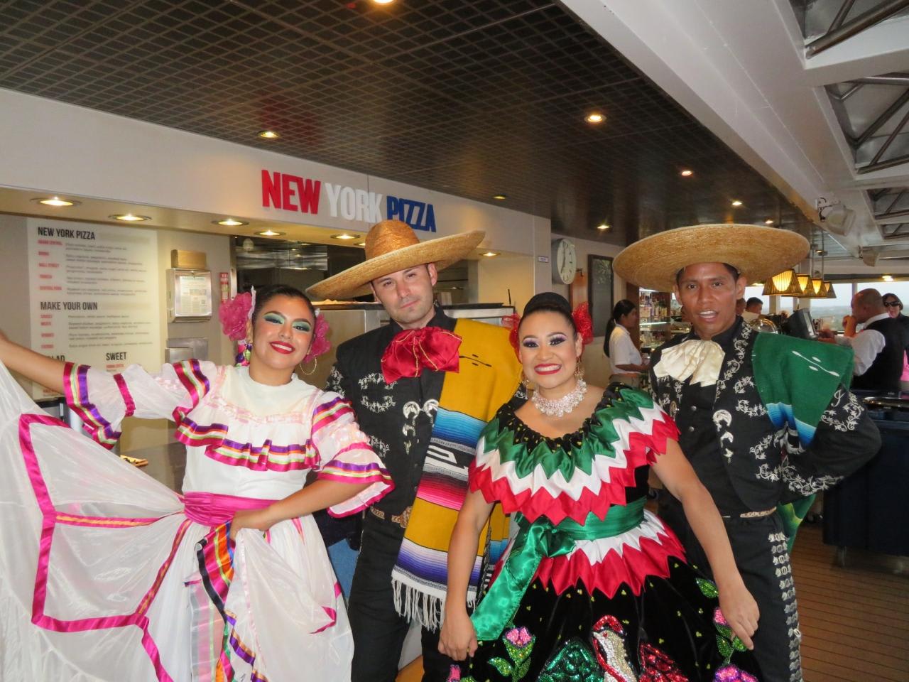 プエルトバジャルタ出港時にはメキシカンフェスタナイトと銘打ってメキシコ衣裳を着てお祭りのような雰囲気