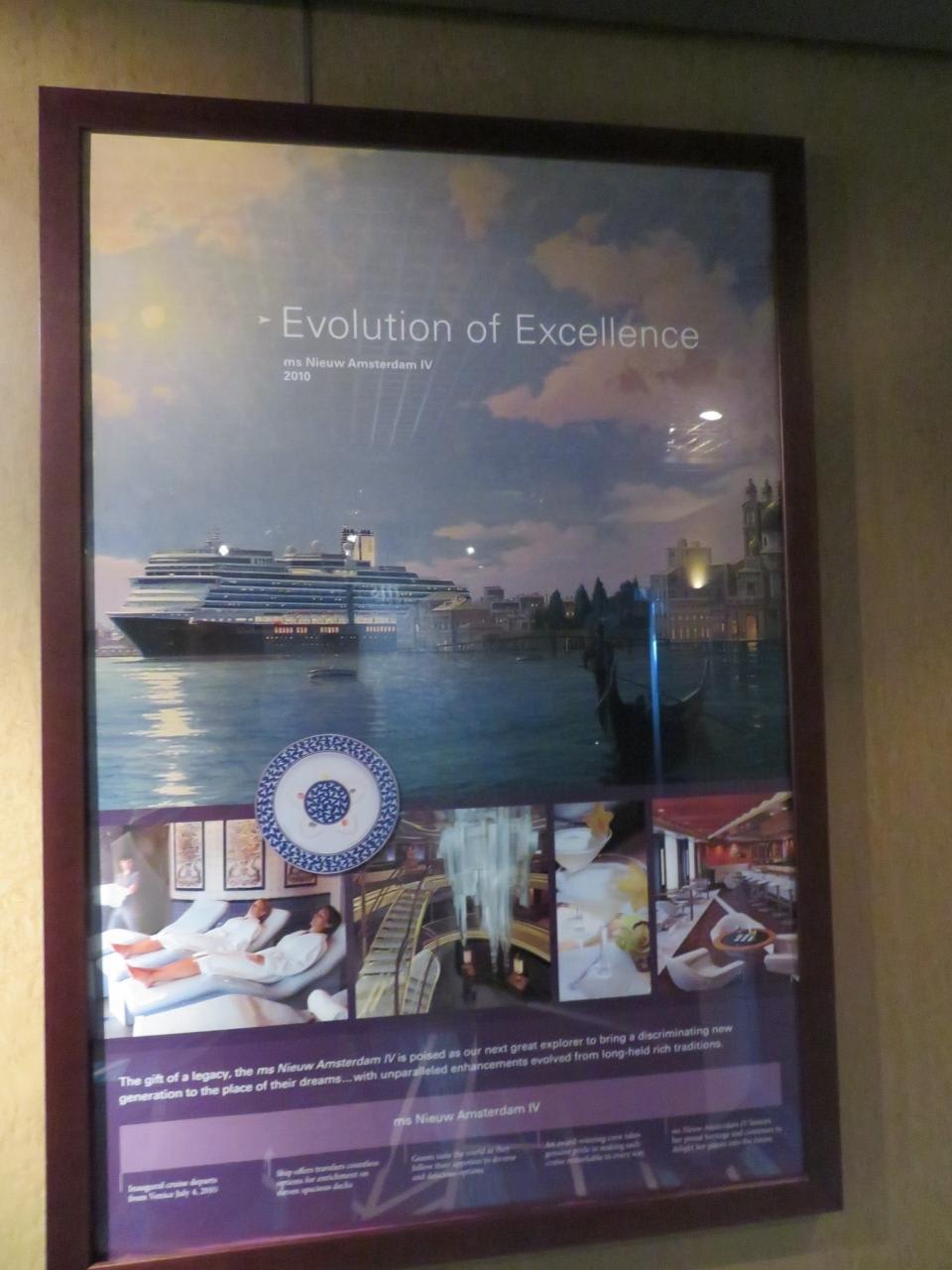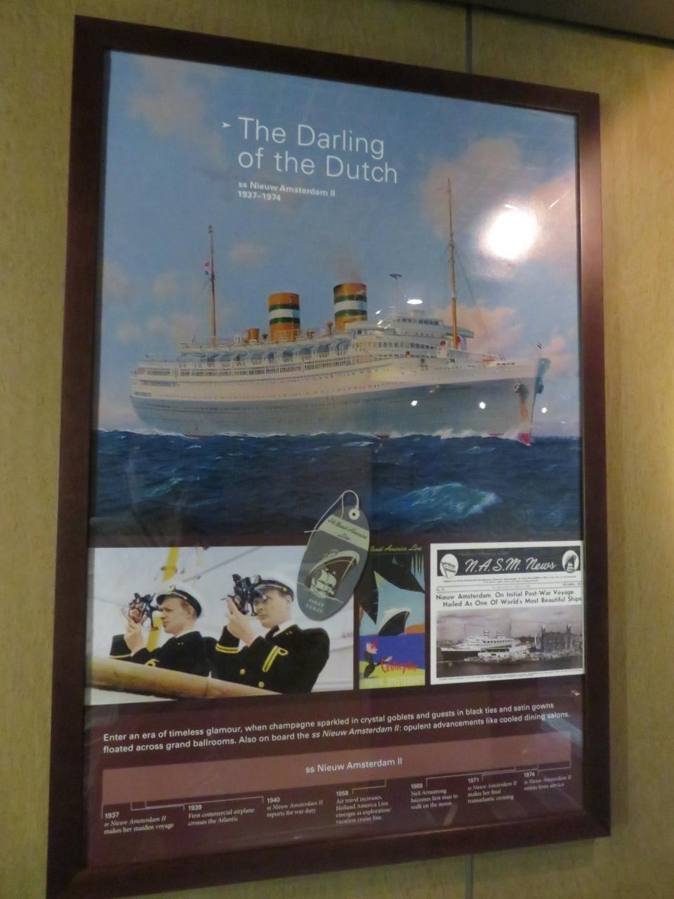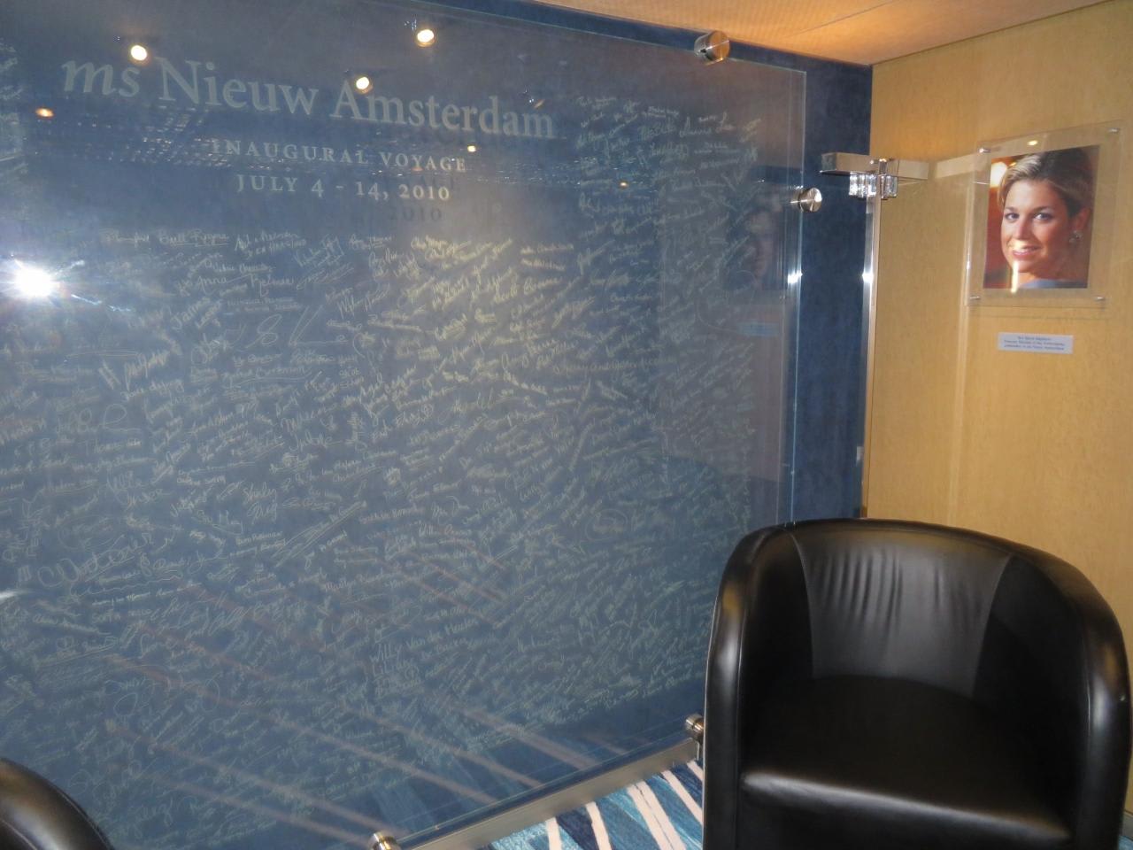 1階アトリウムに飾られているオランダのウイレム・アレキサンダー国王とマクシマ王妃の肖像写真。ホーランドアメリカライン(HAL)はオランダ王室とゆかりも深い事が窺われます。この写真はロッテルダムでも見たので、ホーランドアメリカラインの船共通と思われます。
