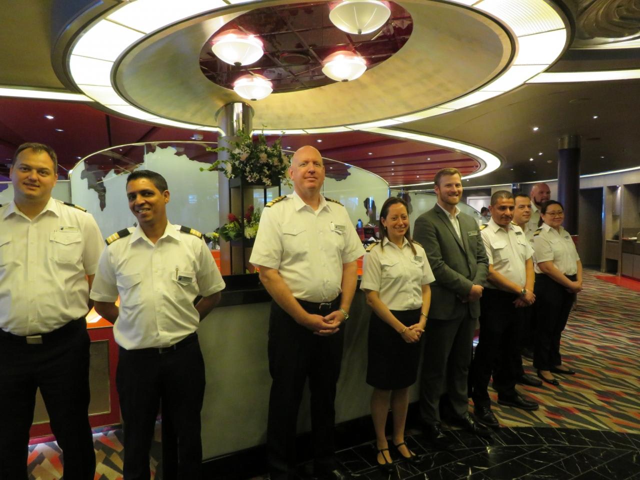 リピーター向けパーティー船長をはじめ上級オフィサーがお出迎え