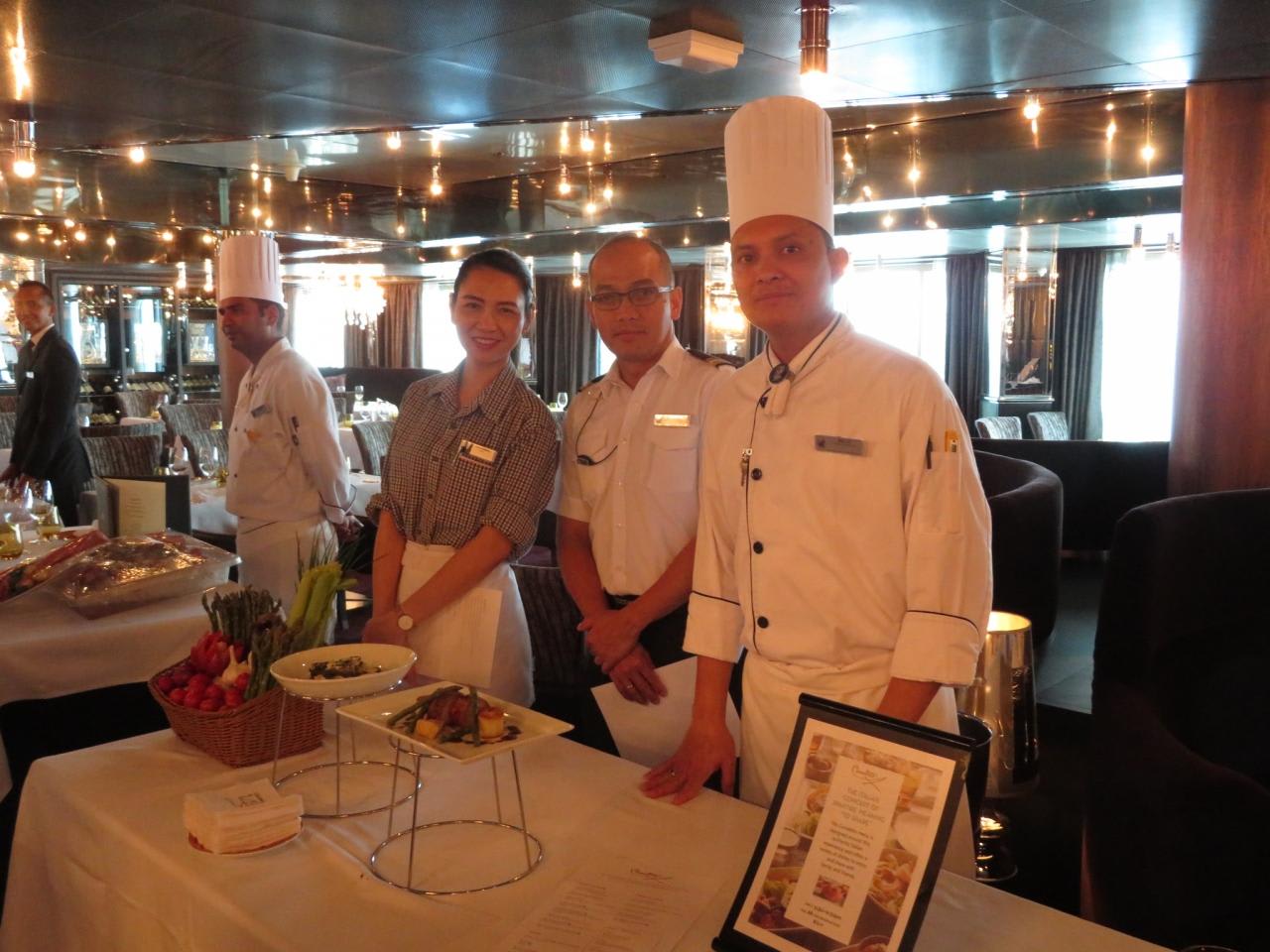 ダイニングルームの出口ではインドネシア人クルーがお口直しのセコンド・デザートをサービス