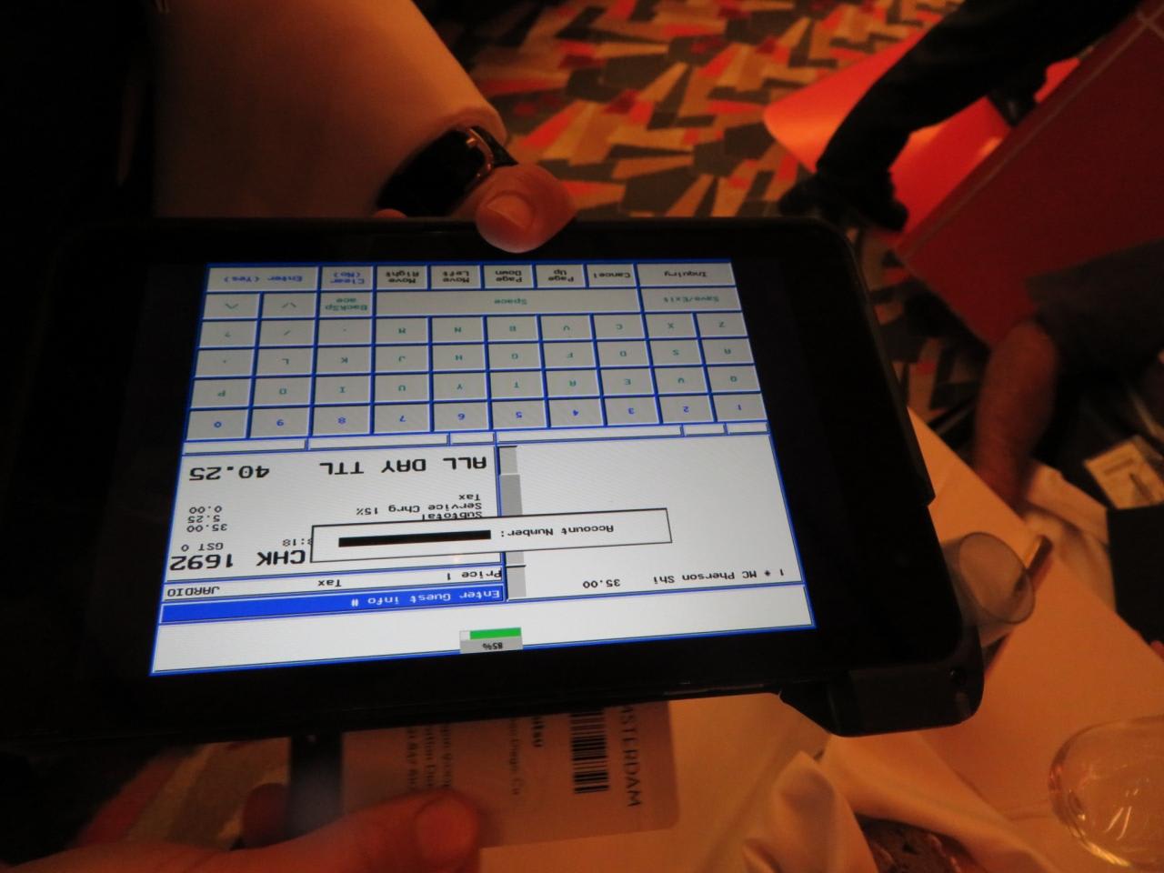 アルコール類を注文する時に使用されるタブレット端末。IDカードをスワイプして決済とオーダー処理が完結する仕組みになっています。今までは船内で注文するとIDカードをバックヤードの方に持っていかれて返却されるまで気がかりでしたが、安心して注文できるようになり、注文した飲み物も直ぐに出てくるようになりました。