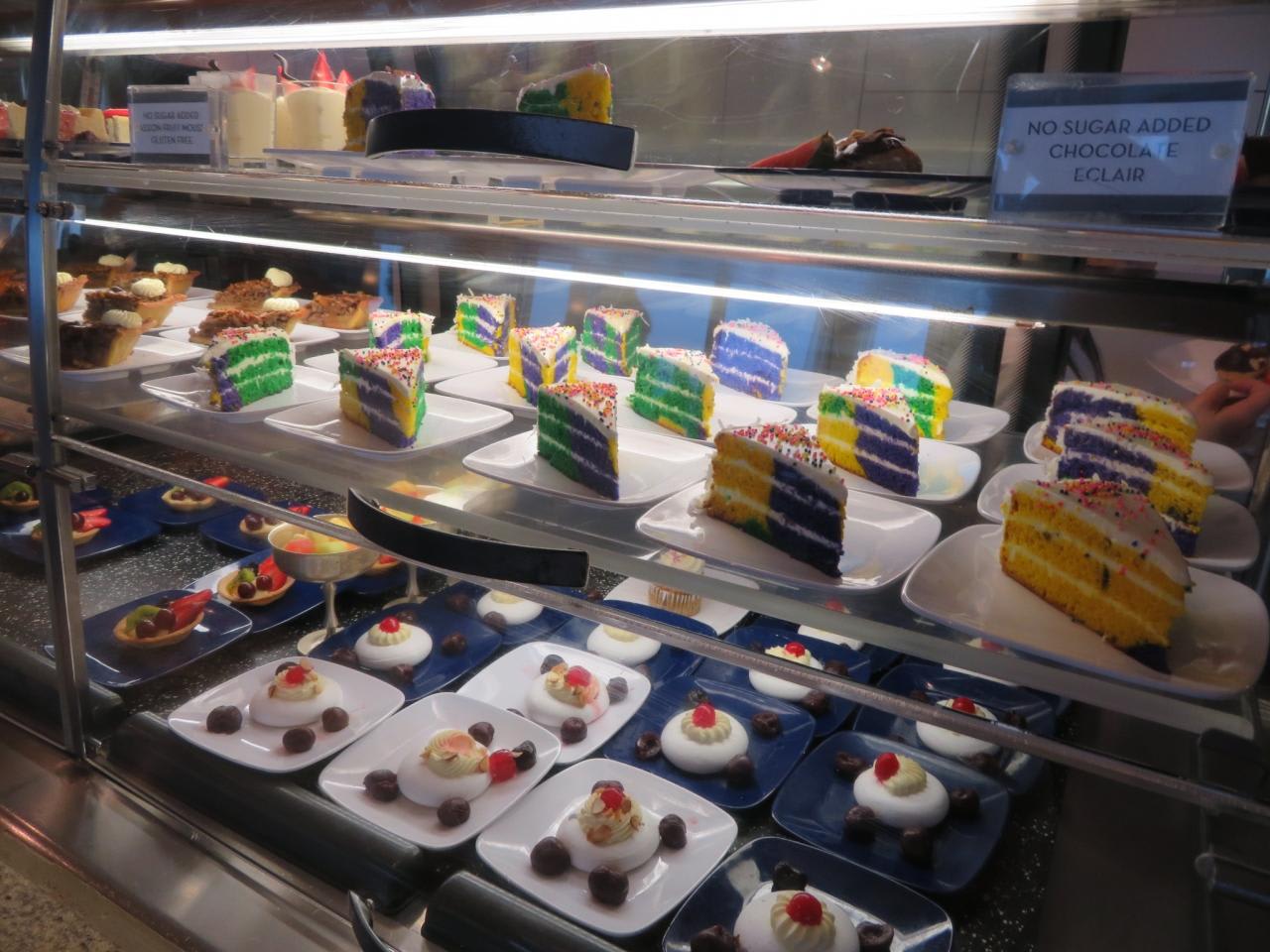 ケーキがこんなに綺麗!食べ放題だからあれもこれも食べてみたくなります。