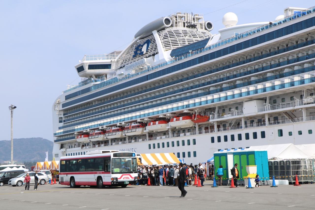 兎に角、見物に訪れた人達が大型客船ダイヤモンド・プリンセスを初めて目の前で見た時の歓声があちこちで聞こえ、感激して興奮しているのが印象的でした。