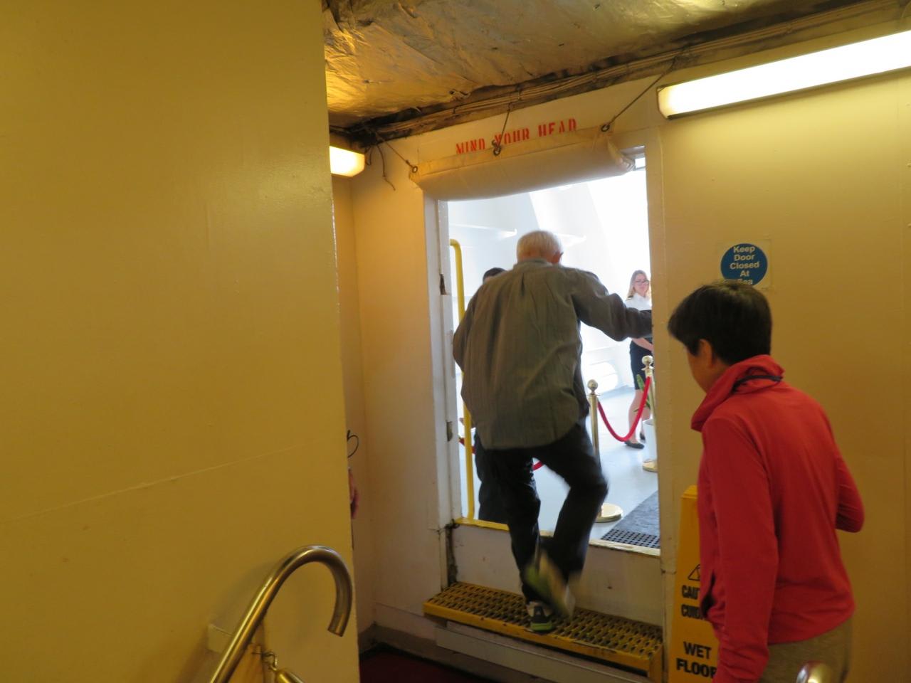 通常は乗組員しか入れない船首部分のエリアに入ります。