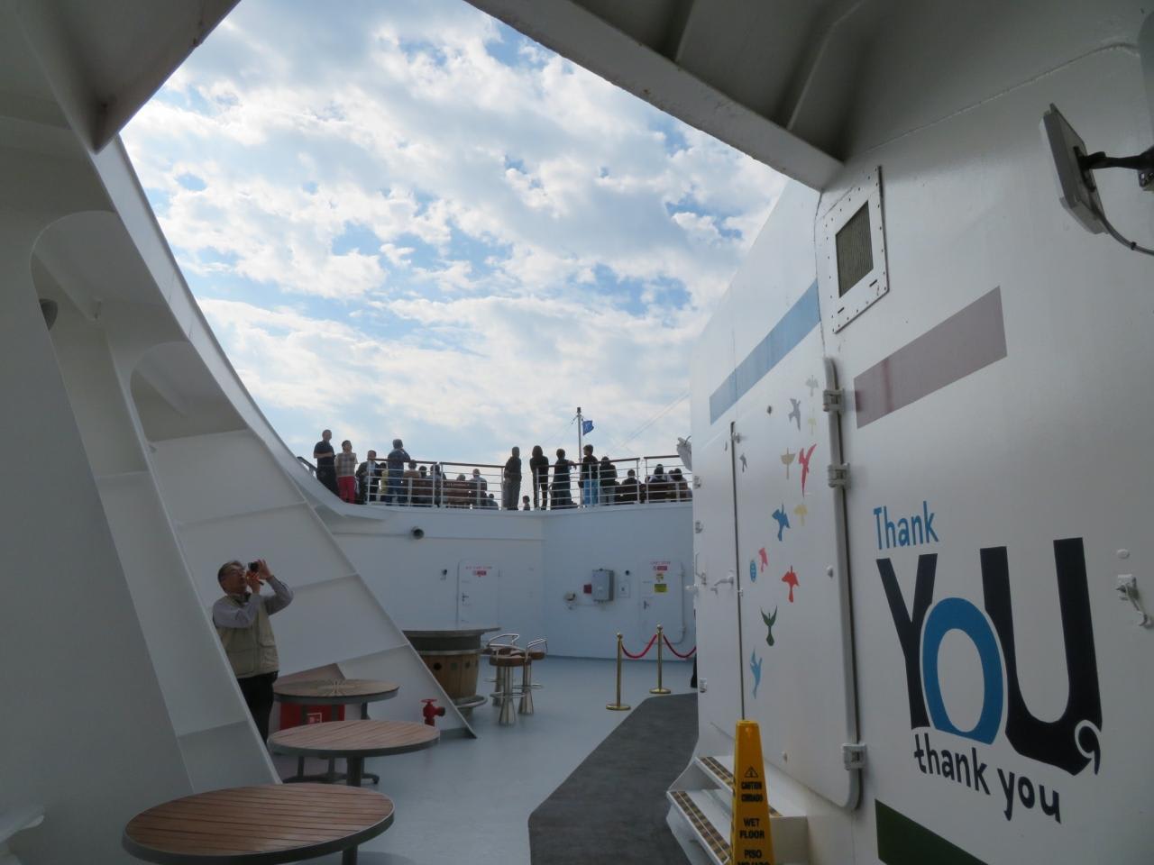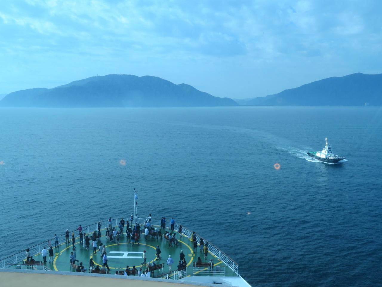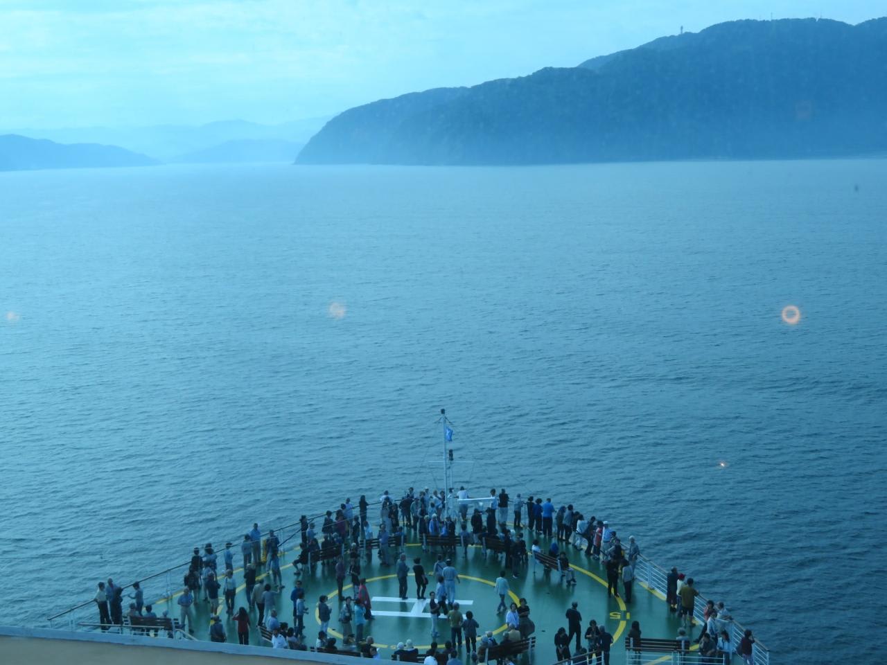 若狭湾を南下し風光明媚な場所を通るので最船首のヘリパッドが開放されました。船側の粋な計らいに感謝感激!!!