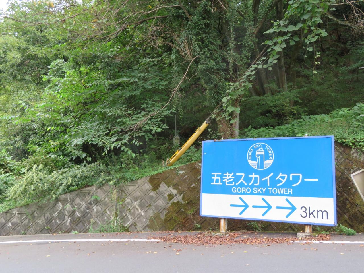 東舞鶴から中舞鶴の方へ国道27号線の緩やかな坂道を走って行ったら五老ケ岳公園口バス停があり、その先に五老スカイタワーまで3kmの標識がありました。3km位ならと たかをくくり自転車を進めましたが、延々と曲がりくねった坂道が続き、電動サイクルでもないママチャリでは汗ビショビショの難行苦行。マイカーや観光バスに乗った人が「変なオジサン」が自転車を引いて歩いているという視線で見て行きました。