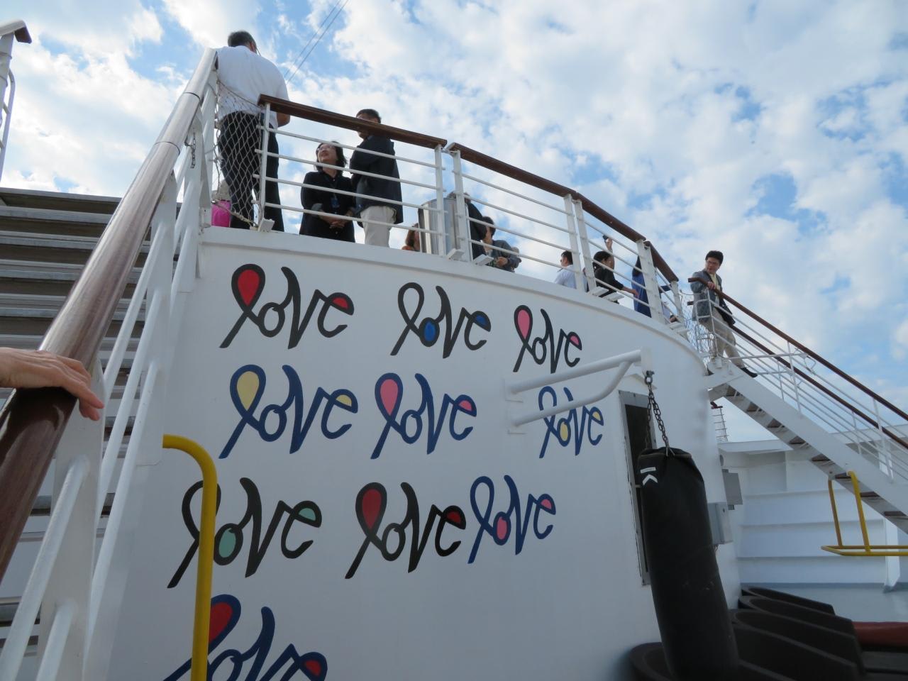 乗組員の休憩スペースには『love』という文字がいっぱい書かれていました。