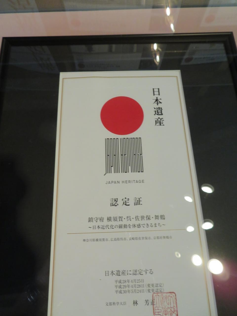 日本近代化の躍動を体感できる町として鎮守府 横須賀、呉、佐世保、舞鶴に贈られた日本遺産認定書