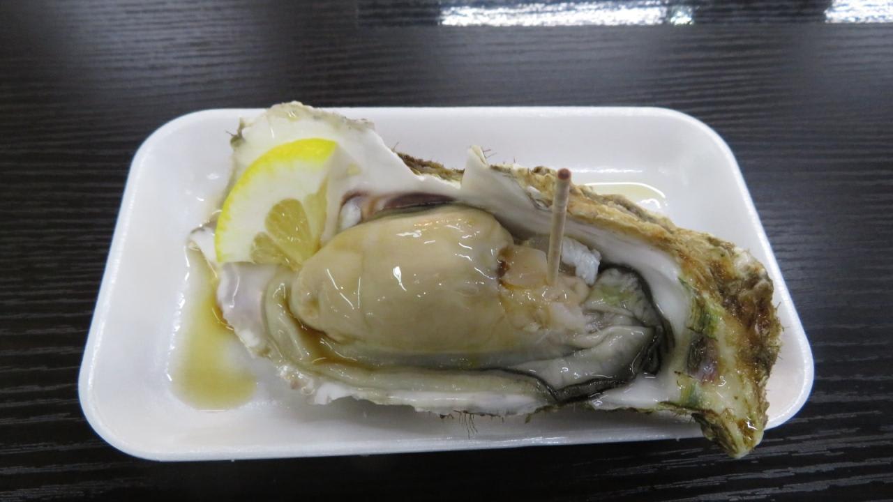 今日は自転車に乗って汗だくだくで走ったので、ご褒美に生食用の岩ガキ((600円)と さざえつぼ焼き(500円)を注文し、ビールを飲んで喉を潤しました。