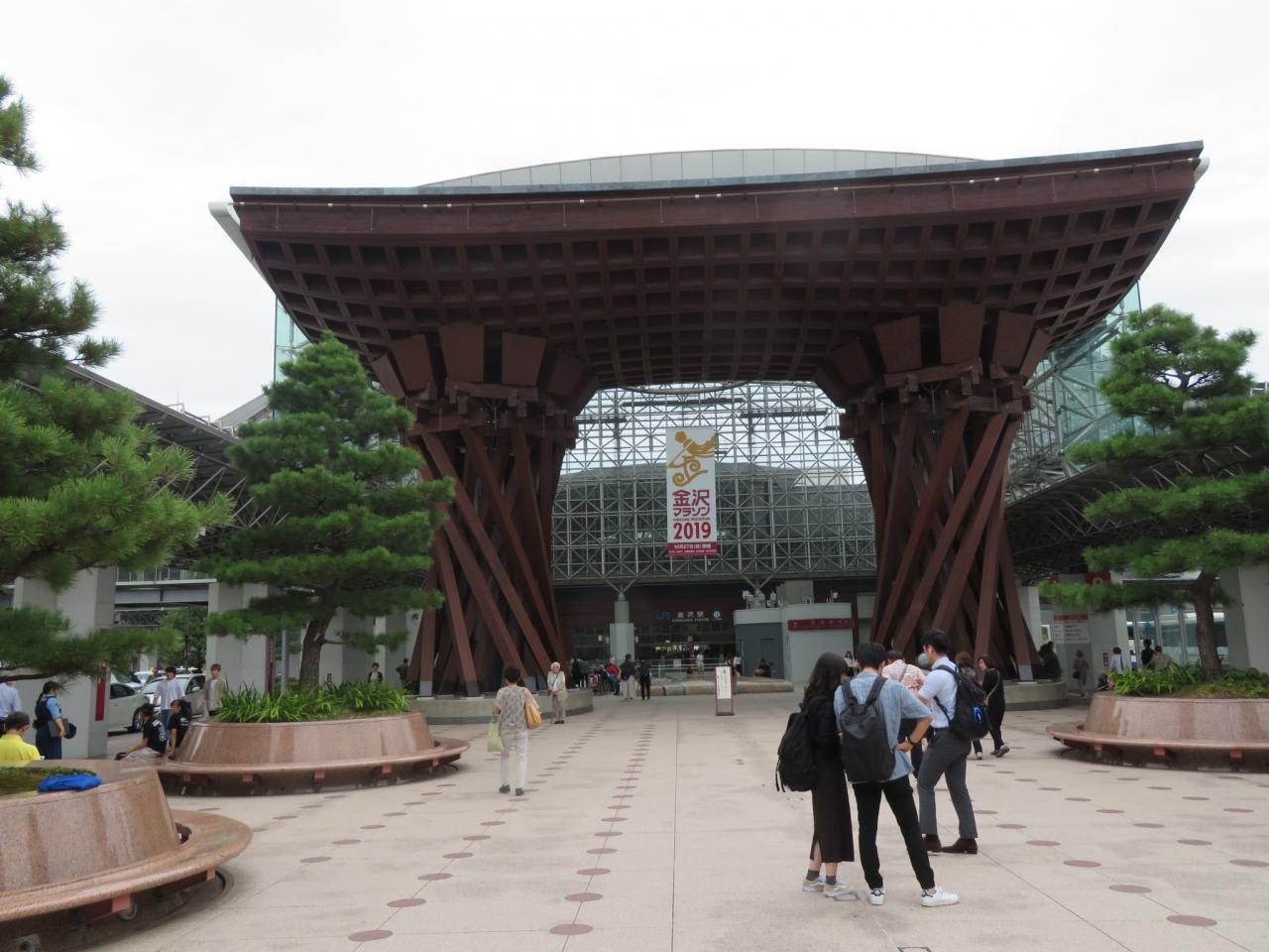 世界で最も美しい駅14選に国内で唯一選ばれたという金沢駅鼓門を眺めて金沢に来たことを改めて実感。
