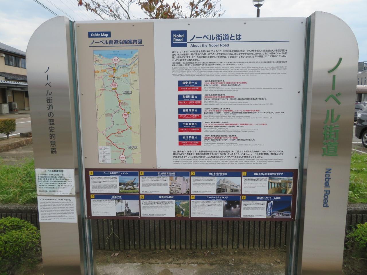 国内に24人いるノーベル賞受賞者の内、田中耕一さんは富山市新川原町出身、利根川進さんは大沢野町、小柴昌俊さんは岐阜県神岡町、白川英樹さんは高山市、梶田隆章さんは富山市在住と5人が国道41号線沿線(高山本線沿い)にゆかりのある人達です。