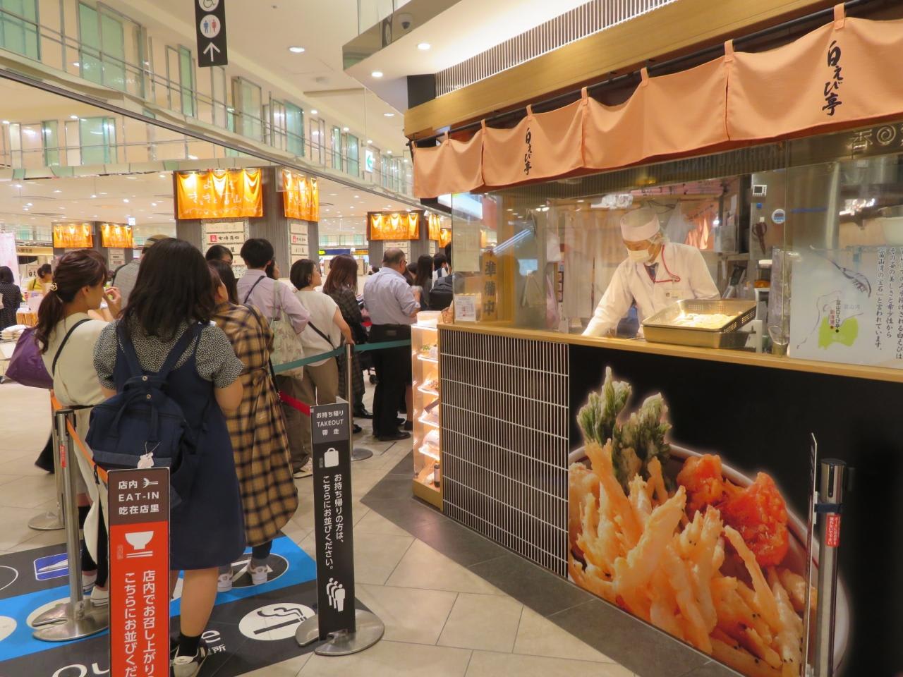 富山駅ビルの きときと市場とやマルシェのレストラン街へ行ったら人気店には長蛇の列。